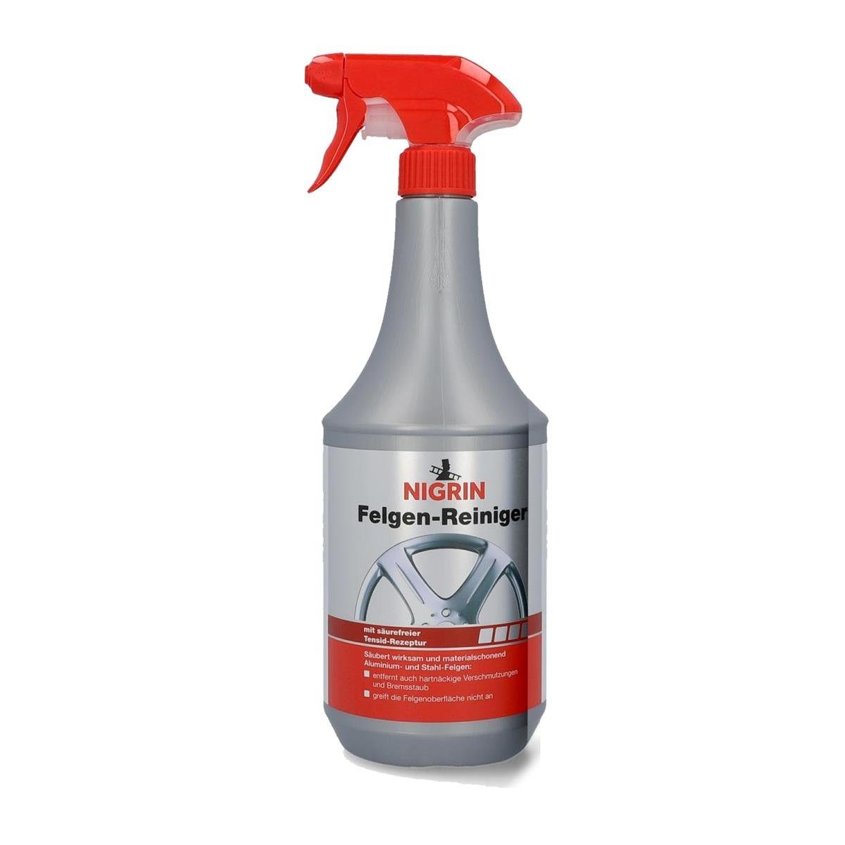 Anwendungshinweise zum säurefreien FelgenreinigerFelgenreiniger gehören zu den beliebtesten Autopflegeprodukten - und besonders deswegen gibt es beim Kauf des passenden Reinigungsproduktes viel zu beachten. Dabei sollte insbesondere ein Fokus auf säurefreie Produkte gelegt werden. Wird zum Beispiel ein säurehaltiges Reinigungsmittel in die Felgenöffnungen gesprüht, setzt sich dieses gerne mal zwischen der Bremsscheibe und dem Bremsbelag fest. Das führt einerseits zu einer reduzierten Bremsleistung und andererseits zu Korrosionsschäden. Der NIGRIN Felgenreiniger setzt sich aus einer säurefreien Tensidrezeptur zusammen und kann deswegen sorgenfrei für die Reinigung Ihrer Felgen verwendet werden.