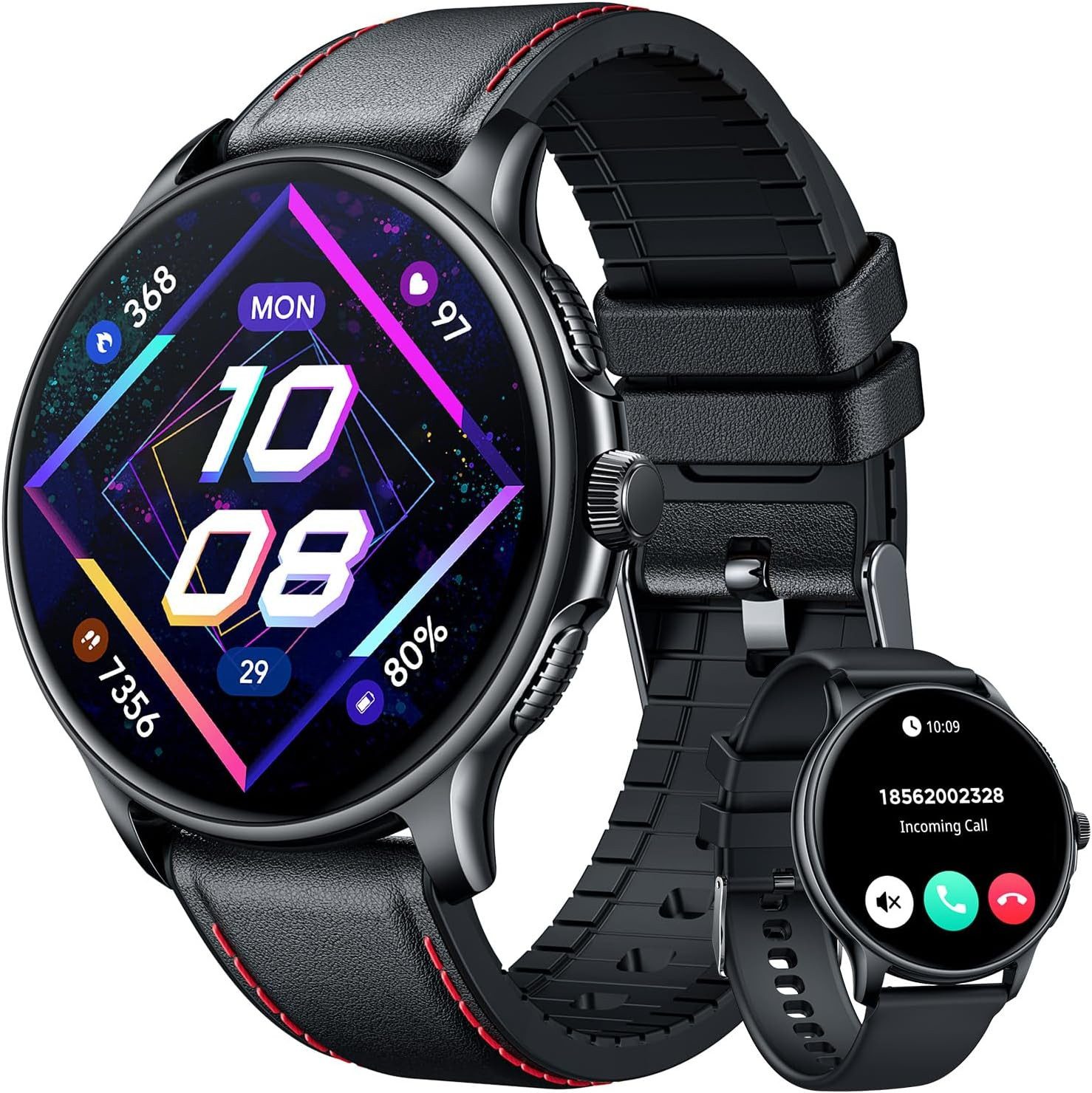 Voll Touchscreen und Personalisiertes Zifferblatt Die Smartwatch für Herren verfügt über einen runden 1,43-Zoll-AMOLED-Bildschirm mit einer Auflösung von 466x466 Pixeln. Dies ermöglicht einen breiten Blickwinkel, starken Kontrast und lebhafte Farben. Sie bietet über 100 einzigartige Online-Zifferblätter zur Auswahl und ermöglicht das Verwenden von eigenen Bildern als Hintergrund. Das Umschalten der Zifferblätter erfolgt durch Drehen des mittleren Knopfes. Bluetooth-Anrufe und Intelligente Benachrichtigung Mit der Smartwatch für Herren können Sie Anrufe direkt von Ihrem Handgelenk aus tätigen und empfangen, wenn sie mit Ihrem Mobiltelefon über Bluetooth verbunden ist. Zudem synchronisiert sie Mobiltelefonkontakte und zeigt deutlich Benachrichtigungen von sozialen Medien wie Facebook und WhatsApp an. Sie werden durch Vibration signalisiert. 24 Stunden Gesundheitsüberwachung Die Herrenuhr ist mit fortschrittlichen Sensoren ausgestattet, die kontinuierlich Ihre Herzfrequenz, Blutdruck, Sauerstoffgehalt im Blut und mehr überwachen. Sie analysiert auch Ihren Schlaf und erstellt detaillierte Schlafberichte. Über die zugehörige App können Sie Gesundheitsdaten und Schlafqualitätsanalysen einsehen, um Ihren Gesundheitszustand zu verbessern und gesunde Gewohnheiten zu fördern. IP68 Wasserdicht und 123 Sportmodi Die Smartwatch unterstützt 123 verschiedene Sportmodi, darunter Gehen, Laufen, Yoga, Radfahren und Seilspringen. Während des Trainings zeichnet sie Kalorienverbrauch, Schritte und andere Daten auf, um Ihre Fitnessziele effektiv zu verfolgen. Mit ihrem IP68 Design ist sie wasserdicht und entspricht Ihren täglichen Anforderungen an Wasserfestigkeit vollständig. Multifunktionale Smartwatch Die Sportuhr für Herren ist mit einem 250-mAh-Akku ausgestattet, der in nur 2 Stunden vollständig aufgeladen werden kann und eine Betriebsdauer von bis zu 5 Tagen bietet, mit 10 Tagen im Standby-Modus. Sie bietet zahlreiche praktische Funktionen wie Wettervorhersage, Trink-Erinnerungen, Fernsteuerung der Kamera, Musiksteuerung, Alarmfunktion, mehrsprachige Unterstützung und Helligkeitseinstellungen. Die Smartwatch ist kompatibel mit Android 5.0+ und iOS 9.0+ Systemen und ist somit eine umfassende und praktische Ergänzung für Ihr tägliches Leben. Diese ausführliche Beschreibung hebt die fortschrittlichen Funktionen der Smartwatch für Herren hervor, von ihrem hochwertigen Display über umfangreiche Gesundheitsüberwachung und Sportmodi bis hin zu vielseitigen Multifunktionalitäten. Ideal für Männer, die Wert auf technische Innovation und Alltagsnutzen legen.