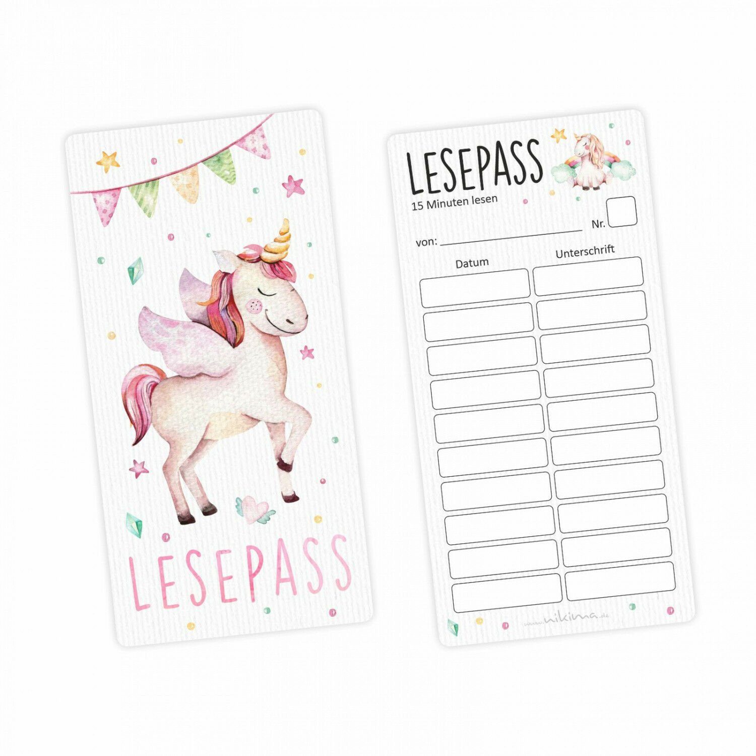 Lesen lernt man nur durch lesen. Der Lesepass gleicht einem Lesezeichen. Durch den stabile Karton und das handliche Format passt es in jedes Buch. Die Einhorn Lesepässe sind auf der Vorderseite mit Glitzer veredelt und sind ein Highlight in jedem Buch. Auf der Rückseite kann der Name und die Nummer des Lesepasses eingetragen werden und es sind 10 Zeilen um die Leseübung zu bestätigen. Durch den Lesepass werden die Grundschulkinder beim Lesen begleitet. Für die Kinder als Motivation, wenn der 1. Lesepass ausgefüllt ist und für die Lehrer und Eltern als Dokumentation wie oft gelesen wurde.