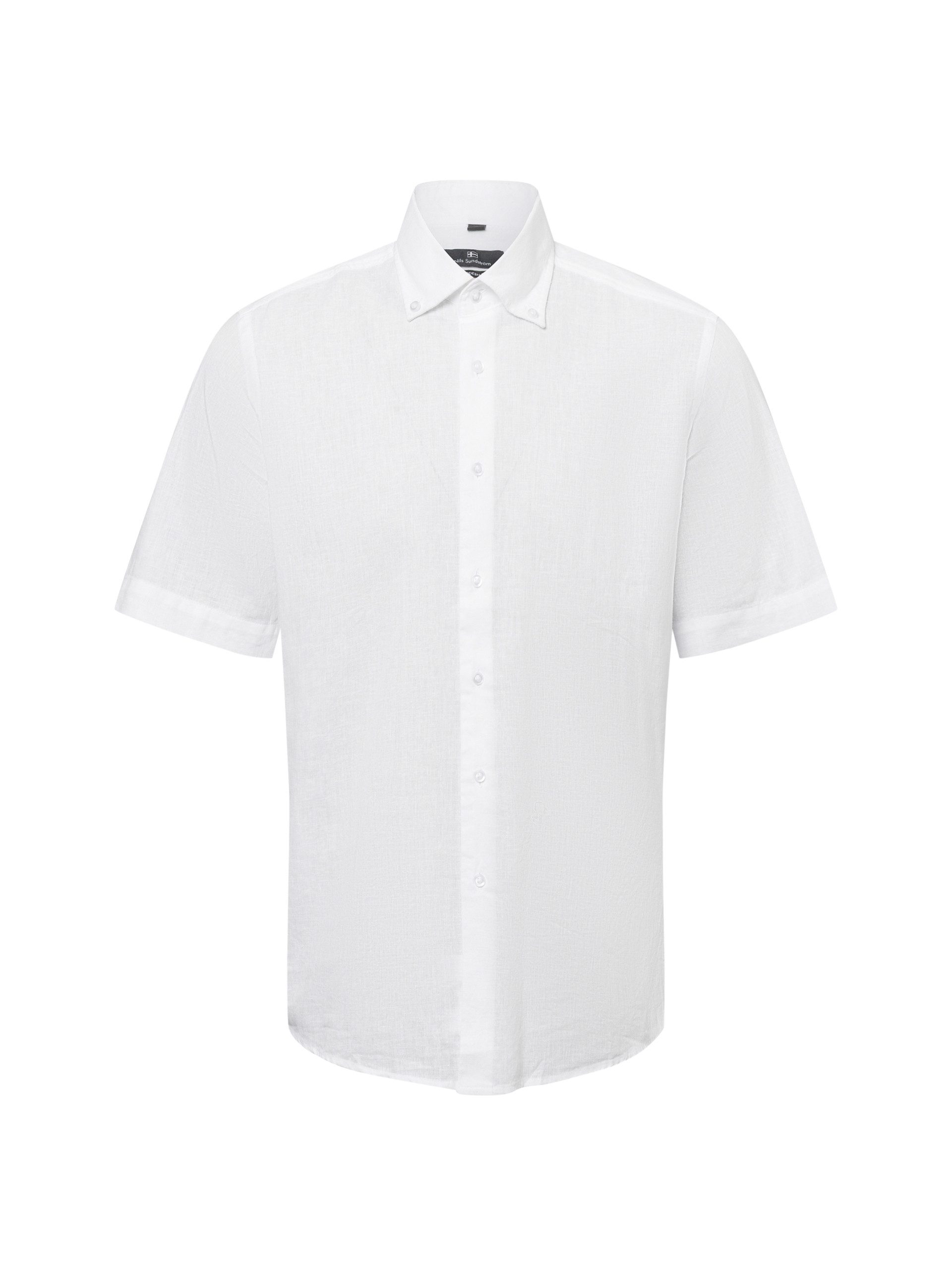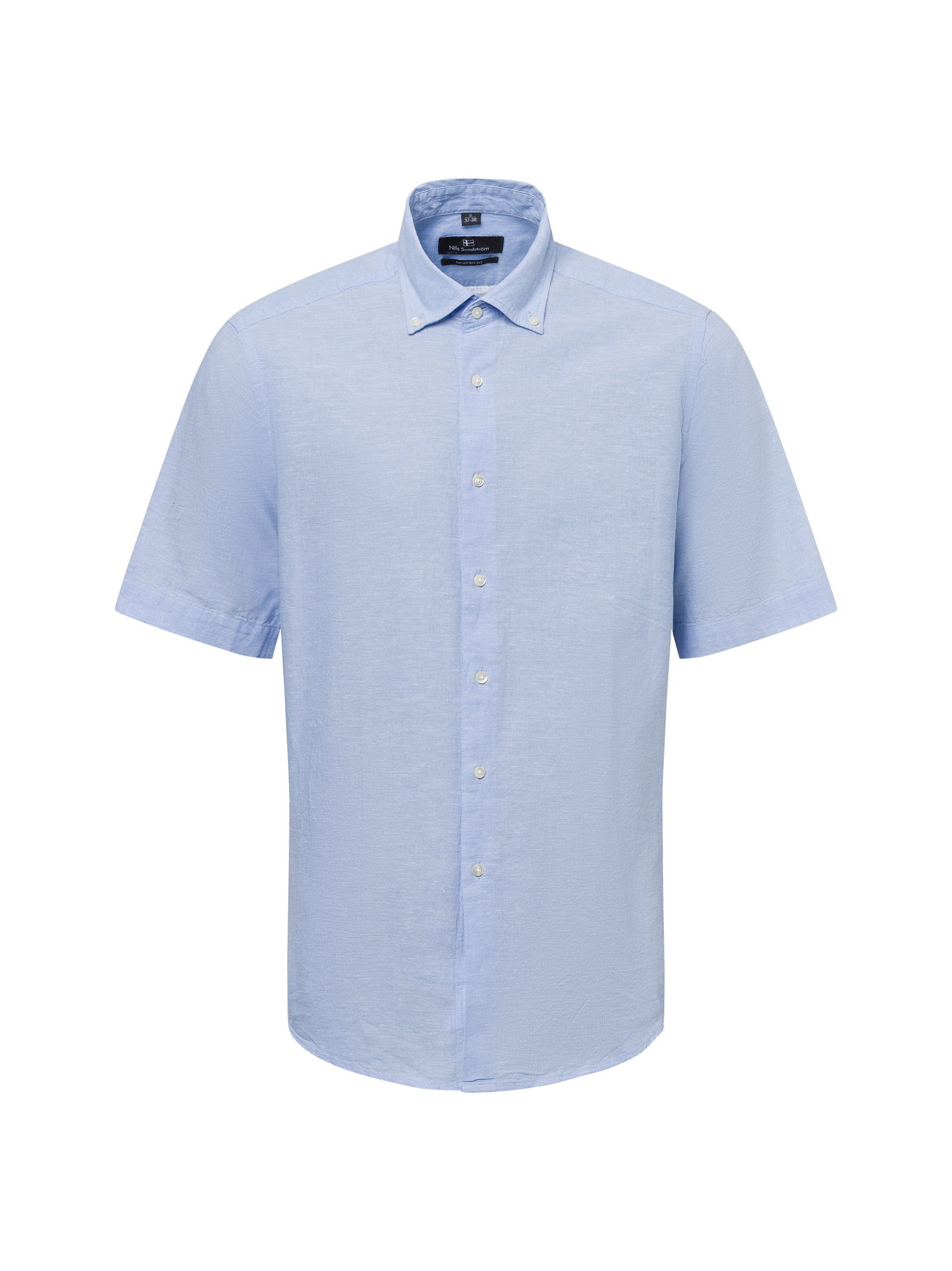 Leicht, lässig und stilvoll: Das Baumwollhemd von Nils Sundström mit Leinenanteil und modernem Button-Down-Kragen bringt sommerliche Eleganz ganz entspannt auf den Punkt.