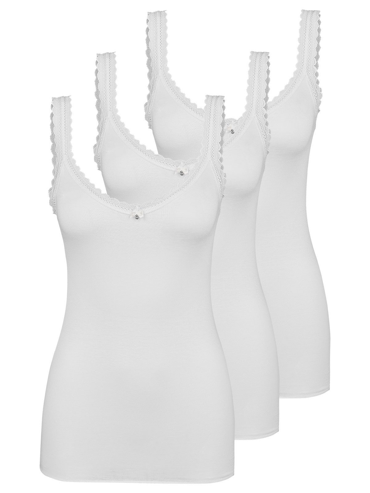 3er Pack Damen Trägerhemd von der Marke Nina von C aus der Serie Simply. Besondere Merkmale des Artikels sind anschmiegsam und hautfreundlich, ohne Seitennähte, zarte Spitzenabschlüsse an Dekoletté und Träger, mit Zierschleife und eng anliegend. Die Produkte von Nina von C. vereinen Wohlbefinden, Qualität und Modebewusstsein. Für moderne Frauen beginnt das Selbstbewusstsein am eigenen Körper. Ob zu Hause oder unterwegs – modische, verspielte und vor allem komfortable Damenwäsche ist hier das A und O. Das ist Nina von C. einfach Wohlfühl-Wäsche für jeden Tag!