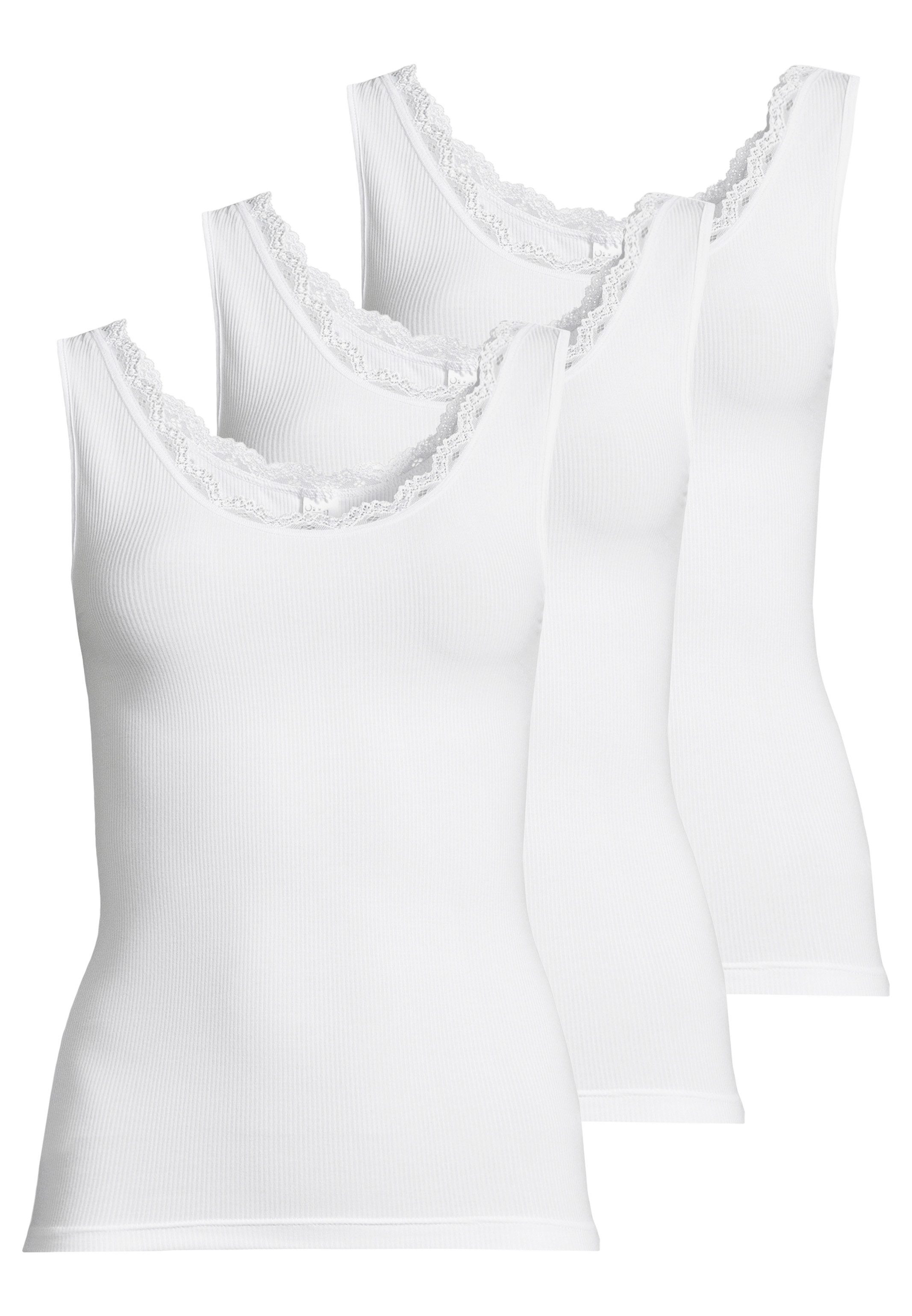 Entdecken Sie das Damen Unterhemd aus der Serie Body & Soul - perfekt als Unterwäsche und als Outerwear. Unter fairen Bedingungen in Europa hergestellt, bietet es eine hochelastische Rippe mit breiten Trägern für maximalen Komfort. Die sportive Anschmiegsamkeit erhält eine elegante Optik durch die perfekt abgestimmten Spitzenabschlüsse in Häkeloptik. Der Rundhalsausschnitt verleiht dem Unterhemd vielseitigen Charme. Dank des gezwirnten Materials wird eine extrem verringerte Pillingbildung erreicht. Dieses Top ist nicht nur ein Wäschestück, sondern auch ein stilvolles Outfit für jeden Tag. Genießen Sie den Komfort und die Eleganz in einem.