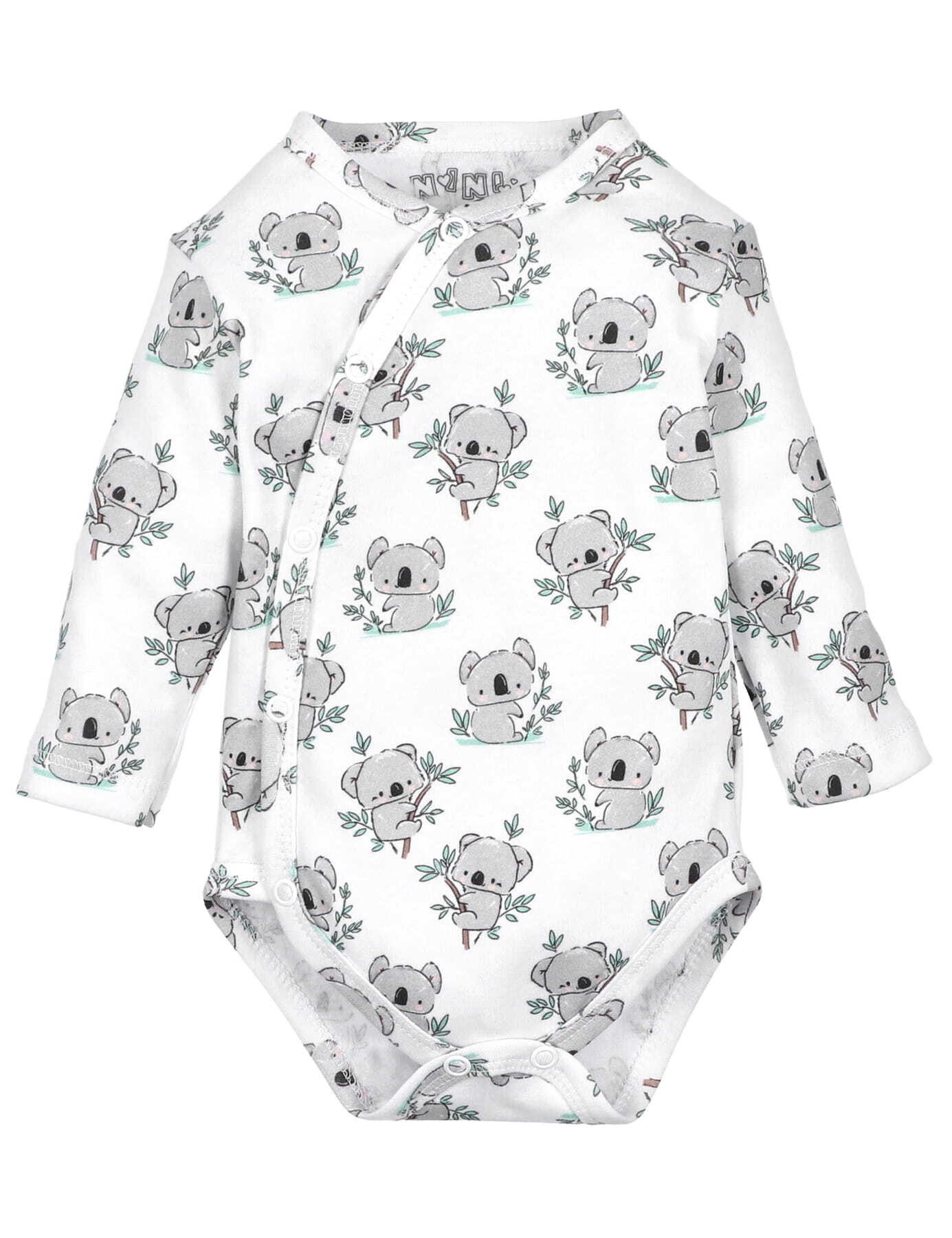 Dieser zauberhafte Baby-Body begeistert mit einem liebevollen Koala-Allover-Print. Die verspielten Koala-Motive auf weichem Stoff verleihen dem Body einen besonders süßen Look. Die sanften Farben und das detailreiche Muster machen ihn zu einem echten Hingucker – perfekt für kleine Entdecker. Die durchgehende Druckknopfleiste auf der Vorderseite ermöglicht ein einfaches An- und Ausziehen, ohne dass der Body über den Kopf gezogen werden muss – besonders praktisch für Neugeborene. Der weiche Stoff ist angenehm auf der Haut und bietet optimale Bewegungsfreiheit. Dank der langen Ärmel bleibt Ihr Baby stets warm und geborgen. (C01523-001)