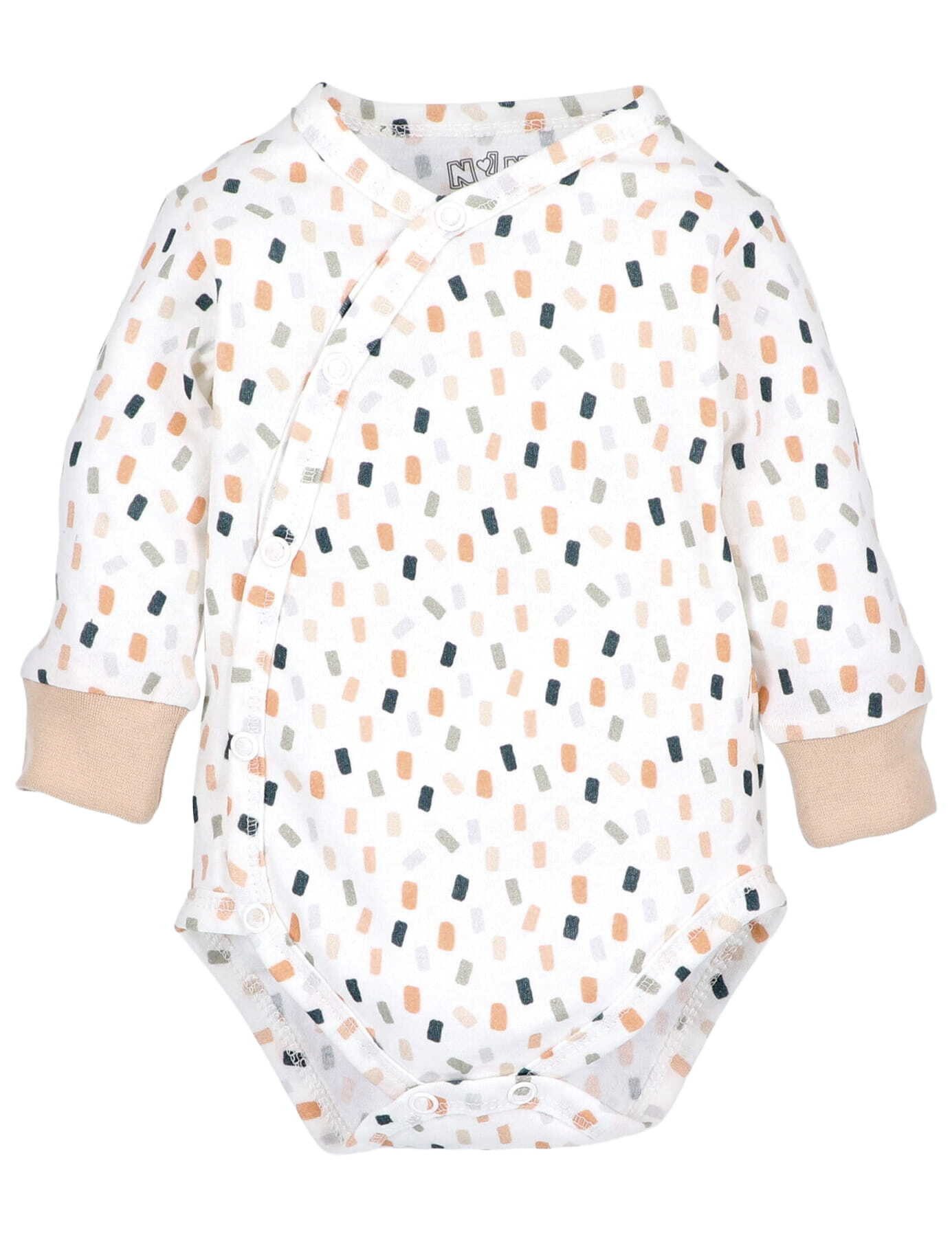 Dieser Wickelbody überzeugt mit einem modernen, aber dezenten Allover-Print in natürlichen Tönen. Die geometrischen Vierecke wirken verspielt, ohne überladen zu sein – perfekt für Babys, die stilvoll träumen möchten. Die kontrastfarbenen Bündchen runden das Design harmonisch ab. Dank der durchgehenden Druckknopfleiste auf der Vorderseite lässt sich dieser Wickelbody besonders einfach an- und ausziehen. Der weiche Stoff schmiegt sich sanft an die Haut und sorgt für höchsten Tragekomfort. Ideal für Neugeborene und kleine Entdecker! (C01869-001)