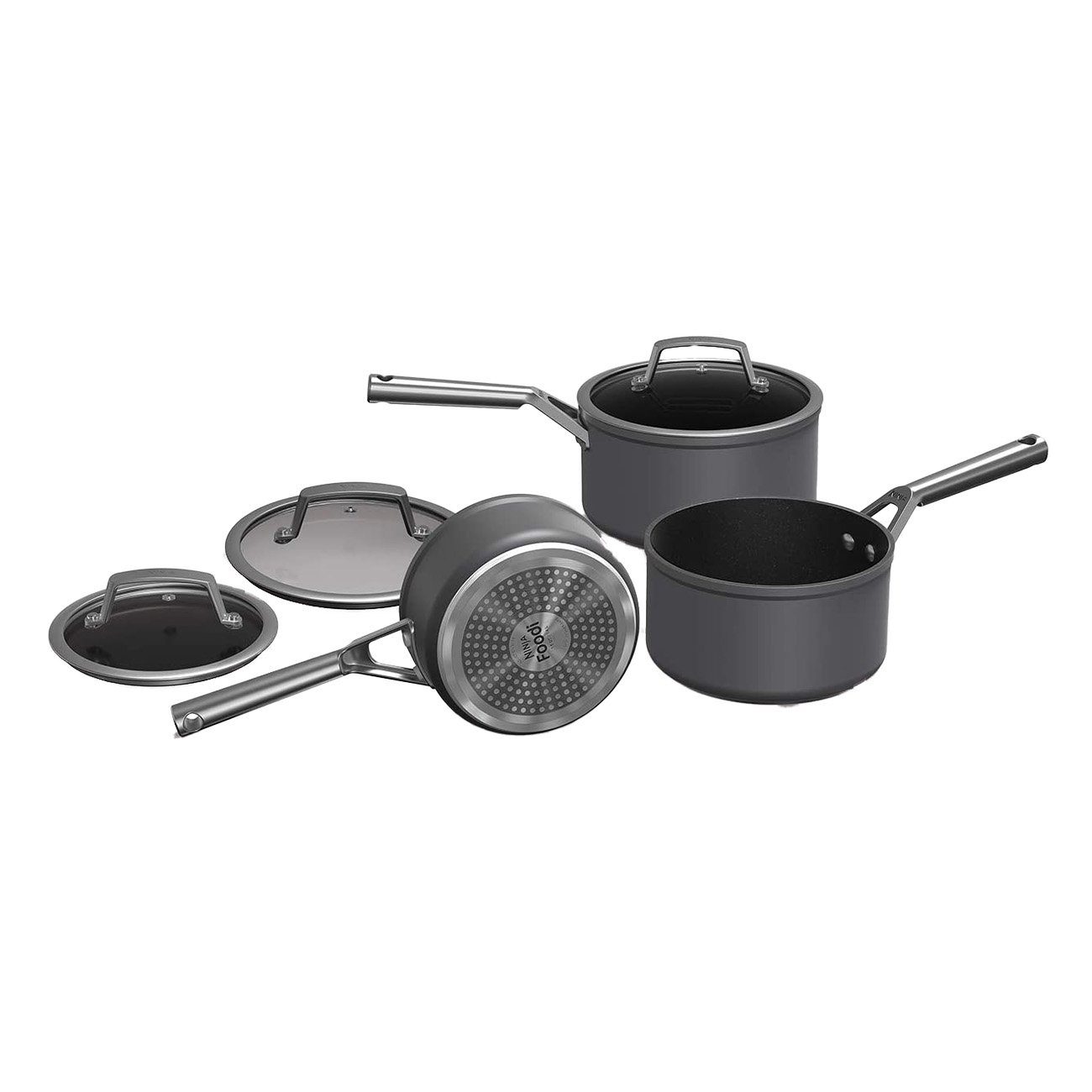 Dieses dreiteilige Topfset besteht aus einer 16-cm, einer 18-cm und einer 20-cm-Stielkasserolle, jeweils mit hochwertigen Deckeln aus hitzebestängdigtem Glas mit Dampfauslass. Von hausgemachten Soßen, Suppen und Chili bis hin zu köstlichen Nudel- und Reisgerichten. Von gesundem Gemüse bis hin zu goldbraunem Karamell und köstlichen Desserts – alles lässt sich mühelos zubereiten.