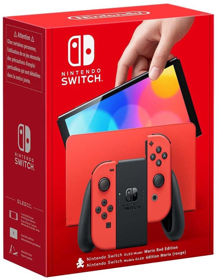 • Nintendo Switch (OLED-Modell) verfügt über einen 7-Zoll-OLED-Bildschirm mit schmalerer Einfassung und hat somit den größten integrierten Bildschirm.