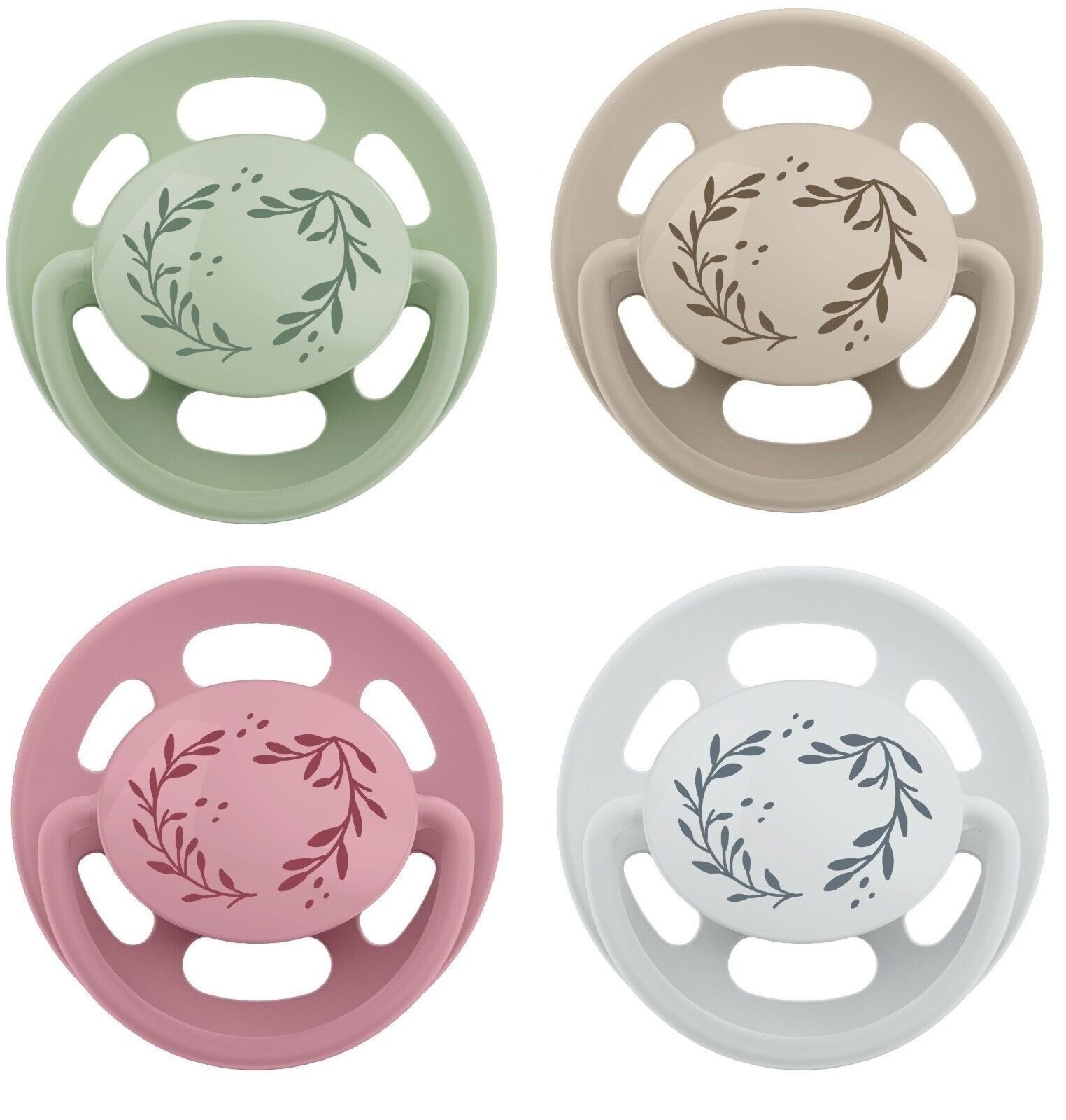 NIP Cherry Greenline Beruhigungssauger Rund Form Latex - im 4er Pack Размер 1 (0 - 6 Monate) oder Размер 2 (6 Monate +) kirschrunde Naturform für ein natürliches Sauggefühl natürlich geformter, weicher Rundsauger aus Latex der mütterlichen Brust nachempfunden Schnullerschild aus angenehm weichem Polypropylen (PP) abgerundeter Schildrand schützt vor Druckstellen große Ventilationslöcher sorgen für eine optimale Belüftung der zarten Babyhaut und beugen Hautirritationen vor mit Greifring für einen sicheren Halt moderne Farben mit floralem Muster erhältlich in den Größen 1 (0-6m) und 2 (6m+) 0% BPA Für die Sicherheit Ihres Kindes Vorsicht! Kontrollieren Sie den Schnuller vor jedem Gebrauch. Ziehen Sie den Schnuller in alle Richtungen. Werfen Sie ihn beim ersten Anzeichen von Beschädigung oder Mängeln sofort weg. Verwenden Sie nur spezielle Schnullerbänder, die der EN 12586 entsprechen Befestigen Sie niemals andere Bänder oder Schnüre an einem Schnuller, Ihr Kind kann sich mit ihnen strangulieren. Setzen Sie den Schnuller nicht direktem Sonnenlicht oder Hitze aus und legen Sie ihn nie länger in Desinfektionslösungen als empfohlen, da dadurch das Saugteil beeinträchtigt werden kann.