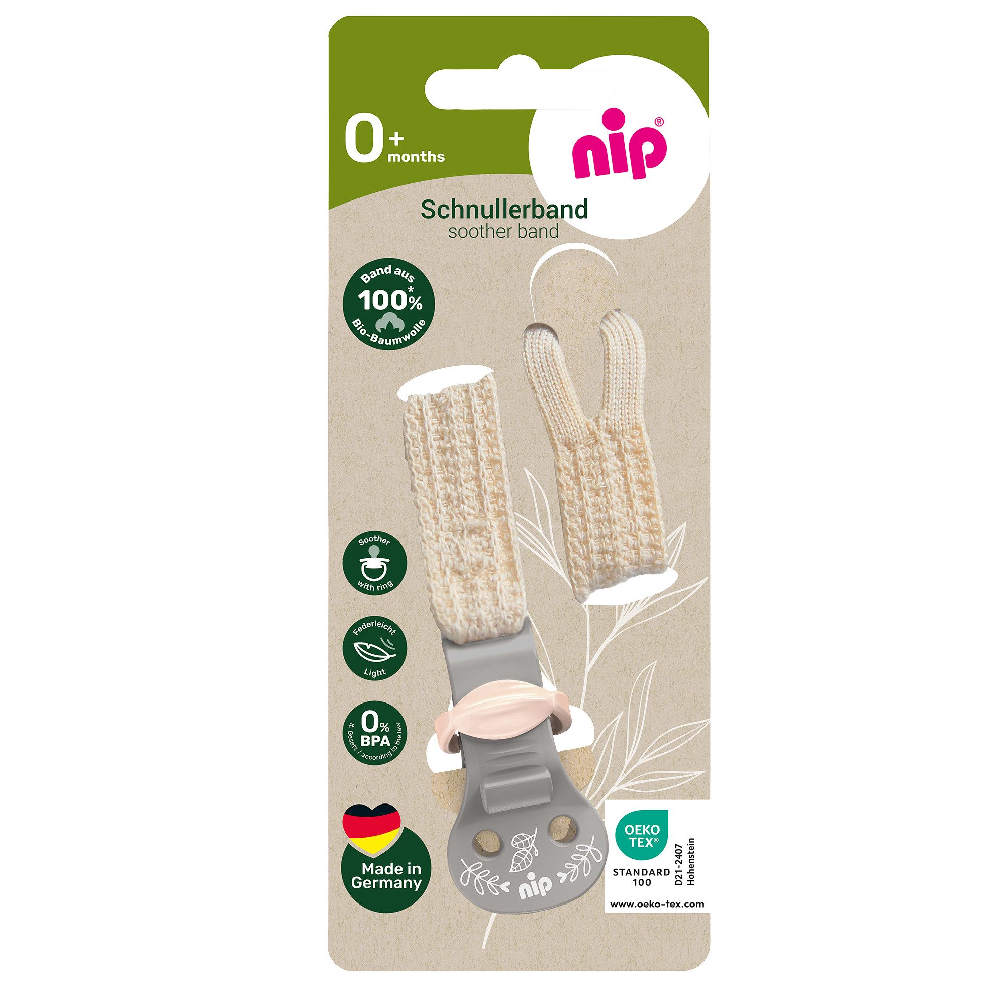 Warnhinweise | Für die Sicherheit Ihres Kindes VORSICHT! •Kontrollieren Sie den Schnullerhalter vor jedem Gebrauch. Werfen Sie ihn beim erstenAnzeichen von Beschädigungen oder Mängeln sofort weg! •Verlängern Sie niemals den Schnullerhalter! •Befestigen Sie den Schnullerhalter niemals an Schnüren, Bändern, Trägern oder losen Teilender Kleidung. Ihr Kind kann sich damit erdrosseln. •Verwenden Sie das Schnullerband nicht als Spielzeug oder Beißring. •Nicht direktem Sonnenlicht oder Hitze aussetzen. •Schnullerband entspricht der EN 12586:2011 und ist von unabhängigen Instituten geprüft. |