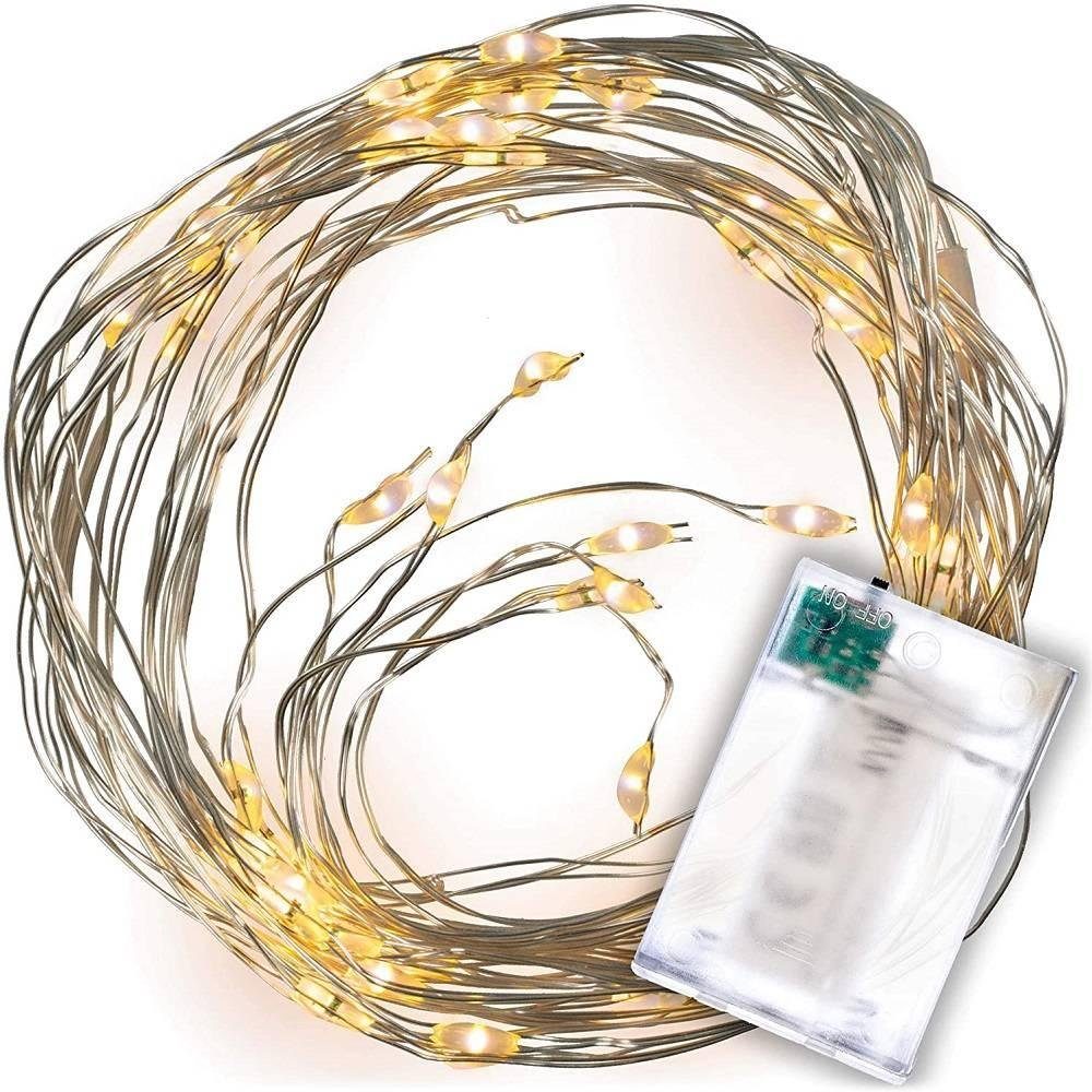 LED Lichterregen 64er 8 silberne Drähte warmweiß Batteriebetrieb Timer BI11024