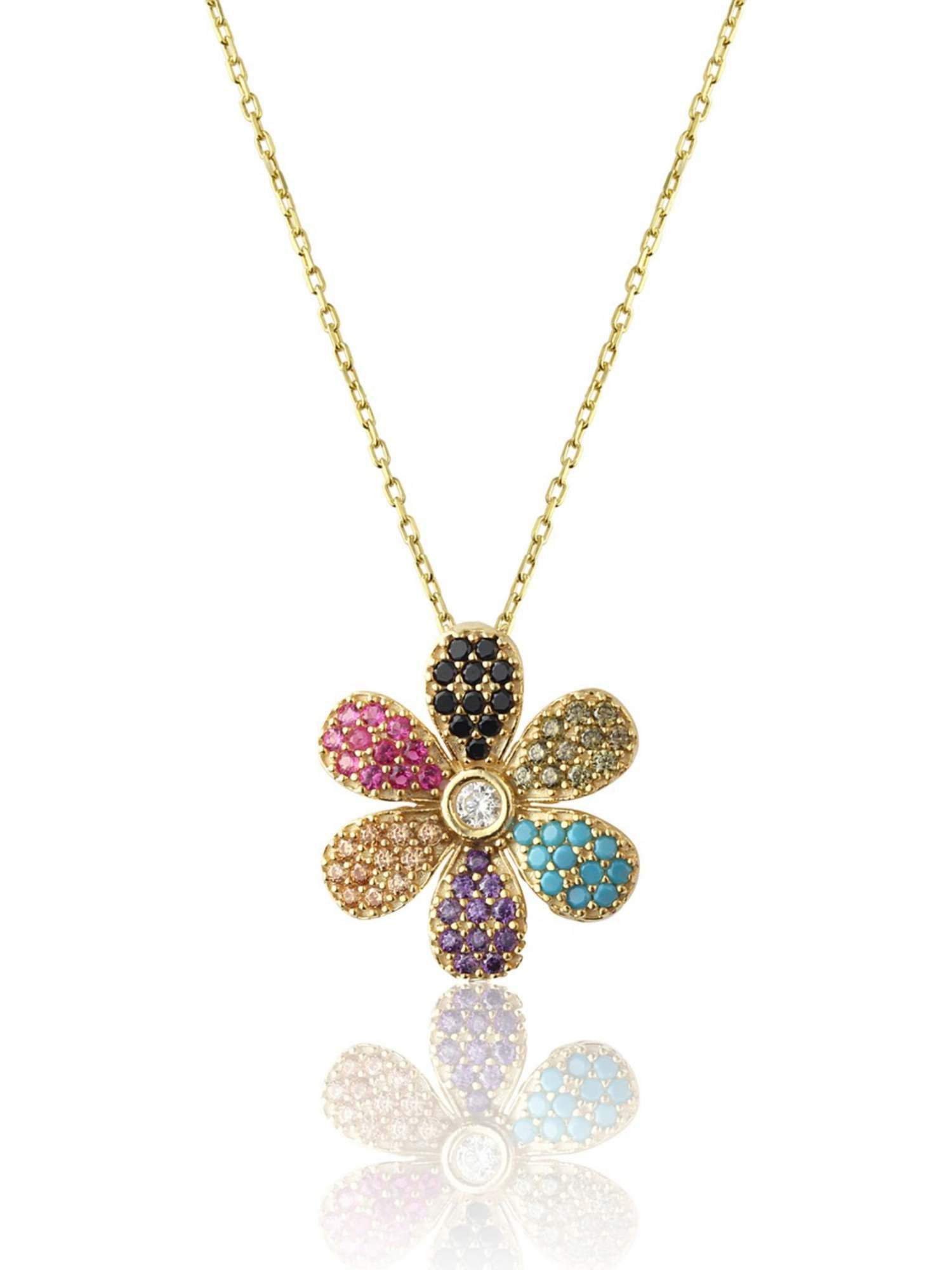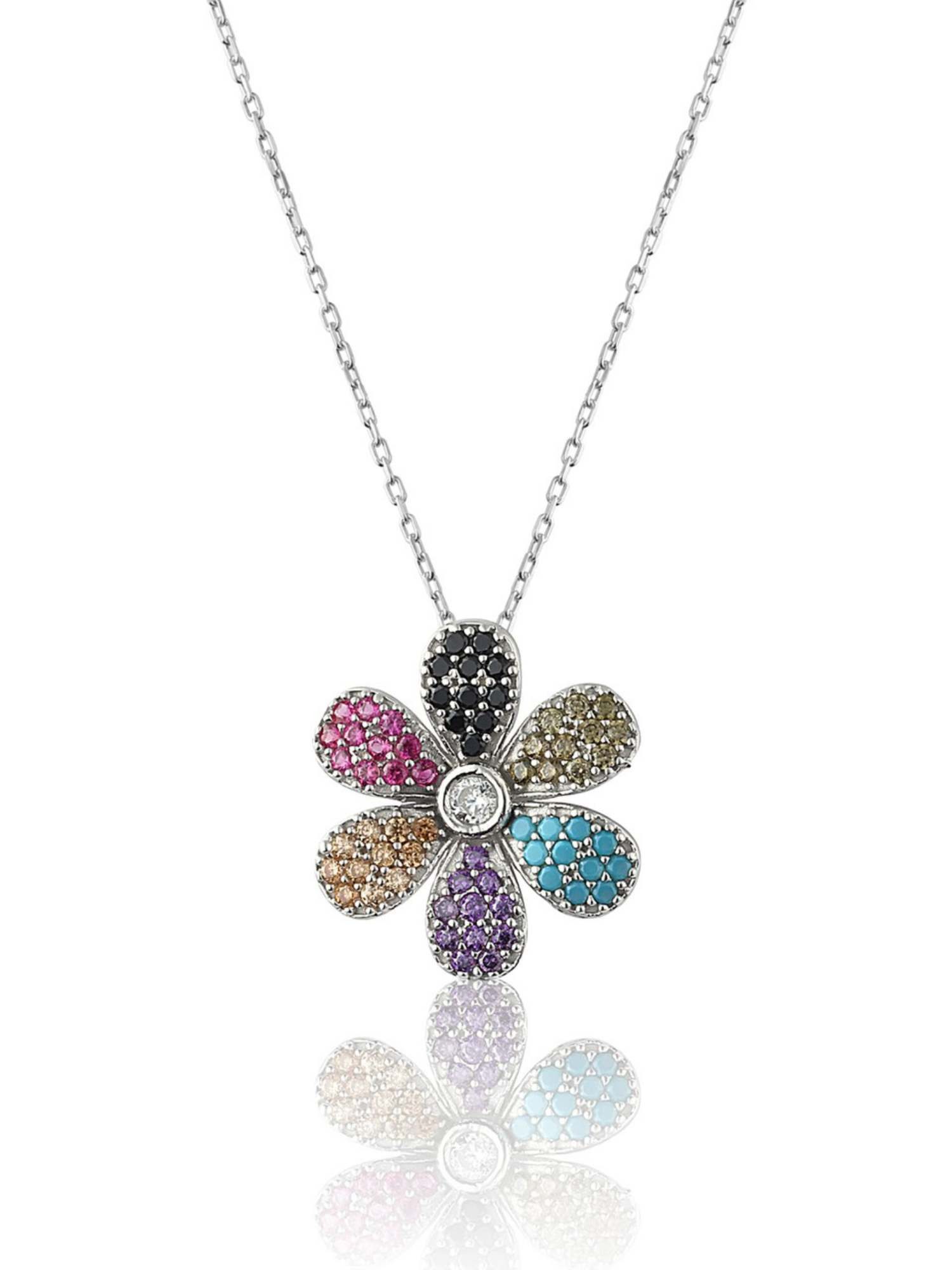Besondere Merkmale | 925 Sterling Silber Halskette – Zirkonia-Blütenkette „Bunte Margerite“ |