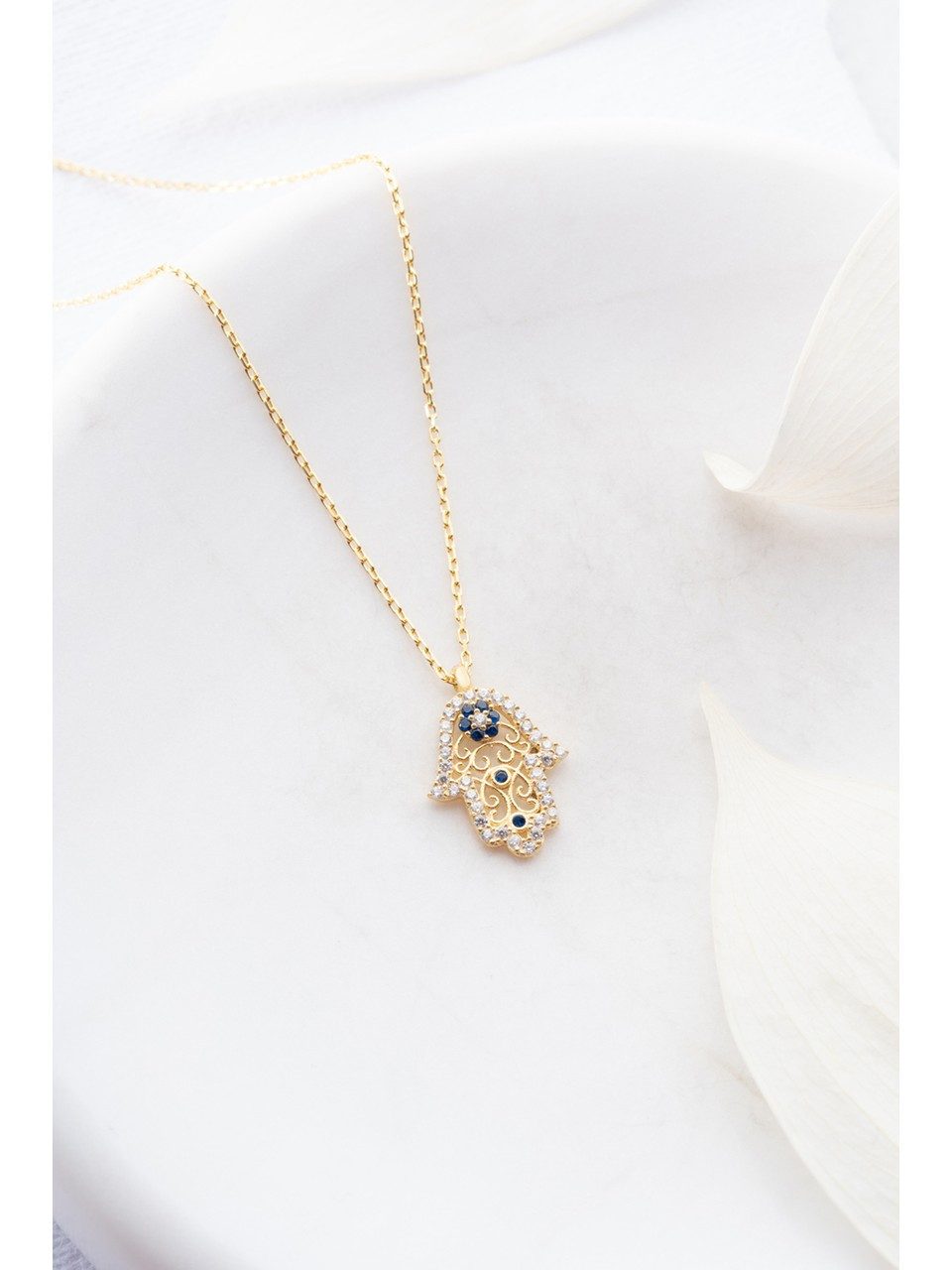 Besondere Merkmale | 925er Silber Halskette mit Goldplattierung – Hamsa Hand Minimal Design |