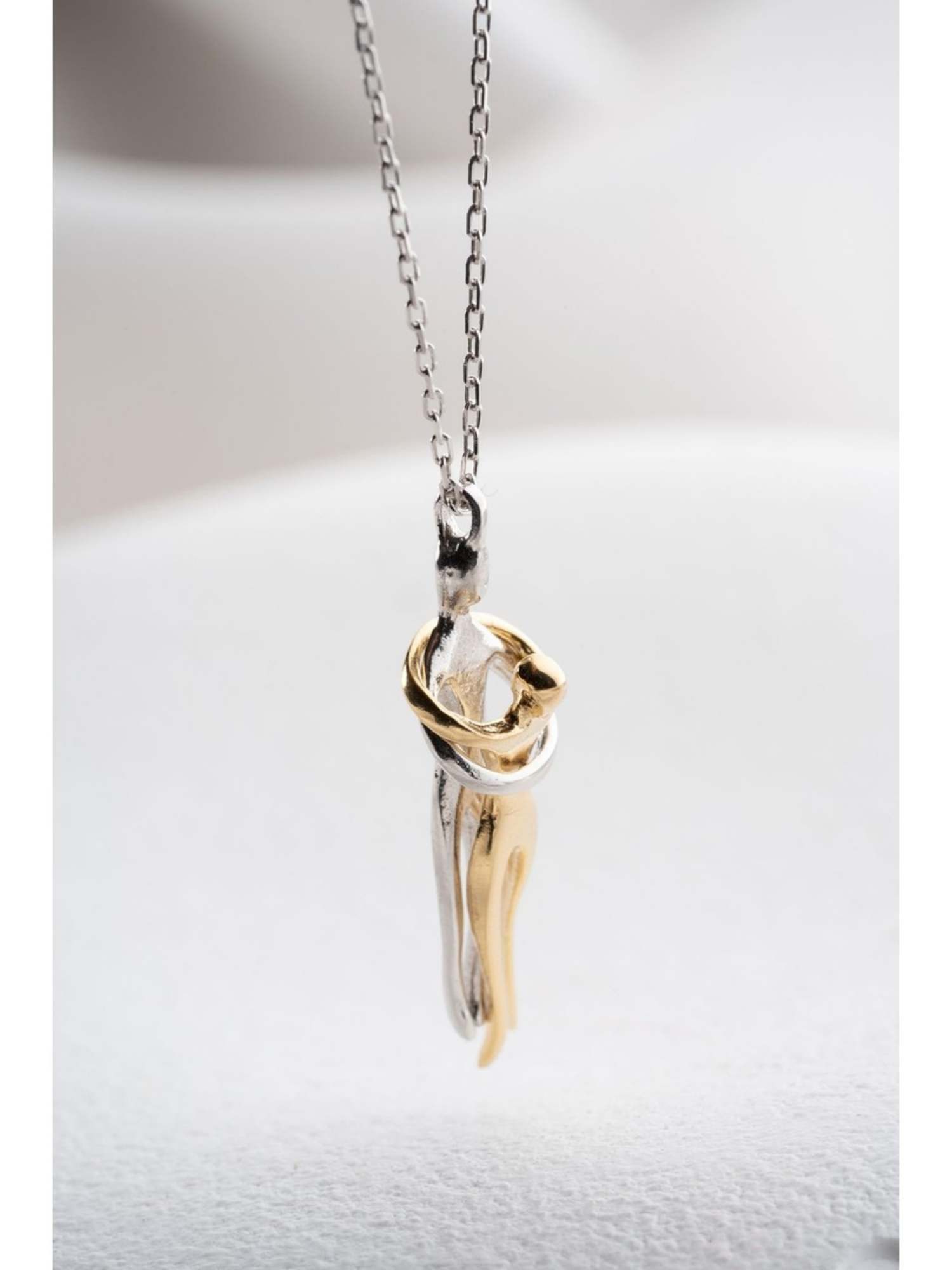 Diese zarte Halskette aus 925er Sterlingsilber zeigt ein stilisiertes Liebespaar in inniger Umarmung – ein wunderschönes Symbol für Nähe, Zuneigung und die Magie der Liebe. Die Kombination aus glänzendem Silber und goldfarbenen Akzenten verleiht dem Anhänger Tiefe und Eleganz.