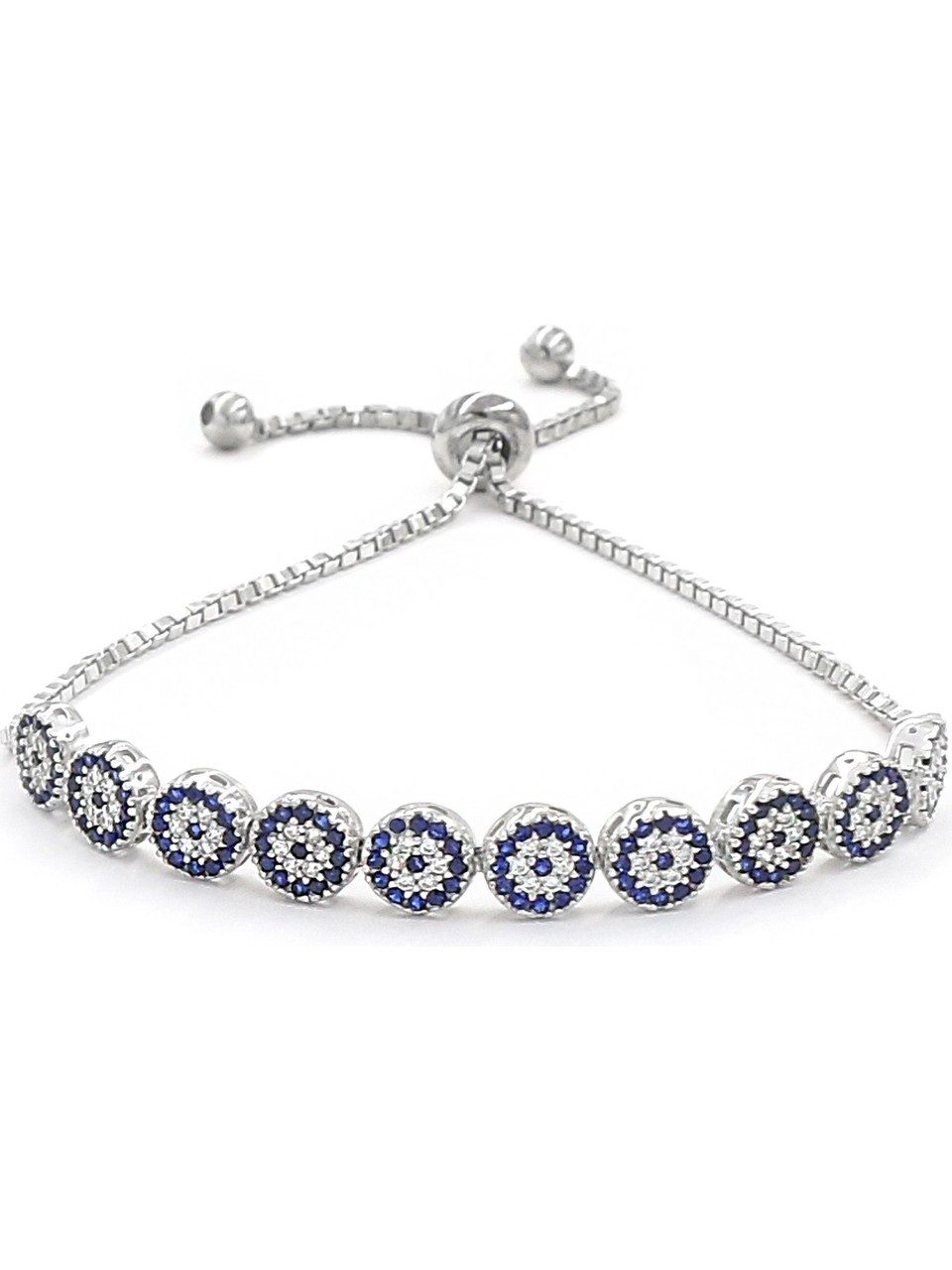 Dieses filigrane Armband vereint den traditionellen Nazar-Amulett-Schutz mit moderner Eleganz. Gefertigt aus hochwertigem 925er Sterling Silber und verziert mit funkelnden blauen und klaren Zirkonia, zieht es alle Blicke auf sich. Die runden Nazar-Motive sind kunstvoll aneinandergereiht und symbolisieren Schutz vor dem „Bösen Blick“. Dank des praktischen Schiebeverschlusses lässt sich das Armband stufenlos an jedes Handgelenk anpassen. Ideal für den Alltag, aber auch als stilvolles Highlight zu besonderen Anlässen – und ein bedeutungsvolles Geschenk für Ihre Liebsten.