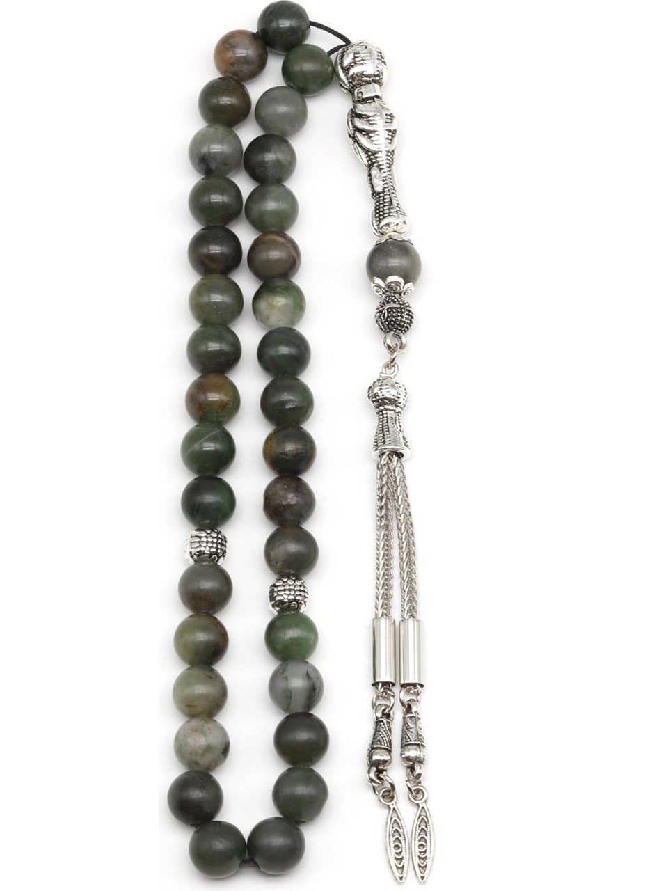 Besondere Merkmale | Afrikanischer Jade Naturstein Gebetskette – 33 Perlen, 8 mm Kugelform |