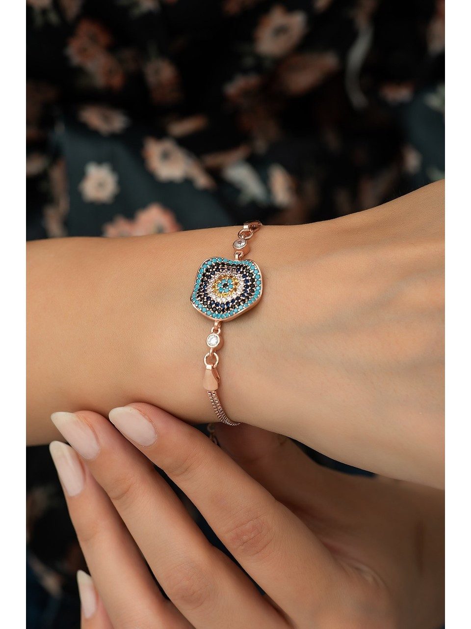 Besondere Merkmale | Silber Damen Armband, Nazar-Design mit Zirkonia-Steinen, 19 cm |