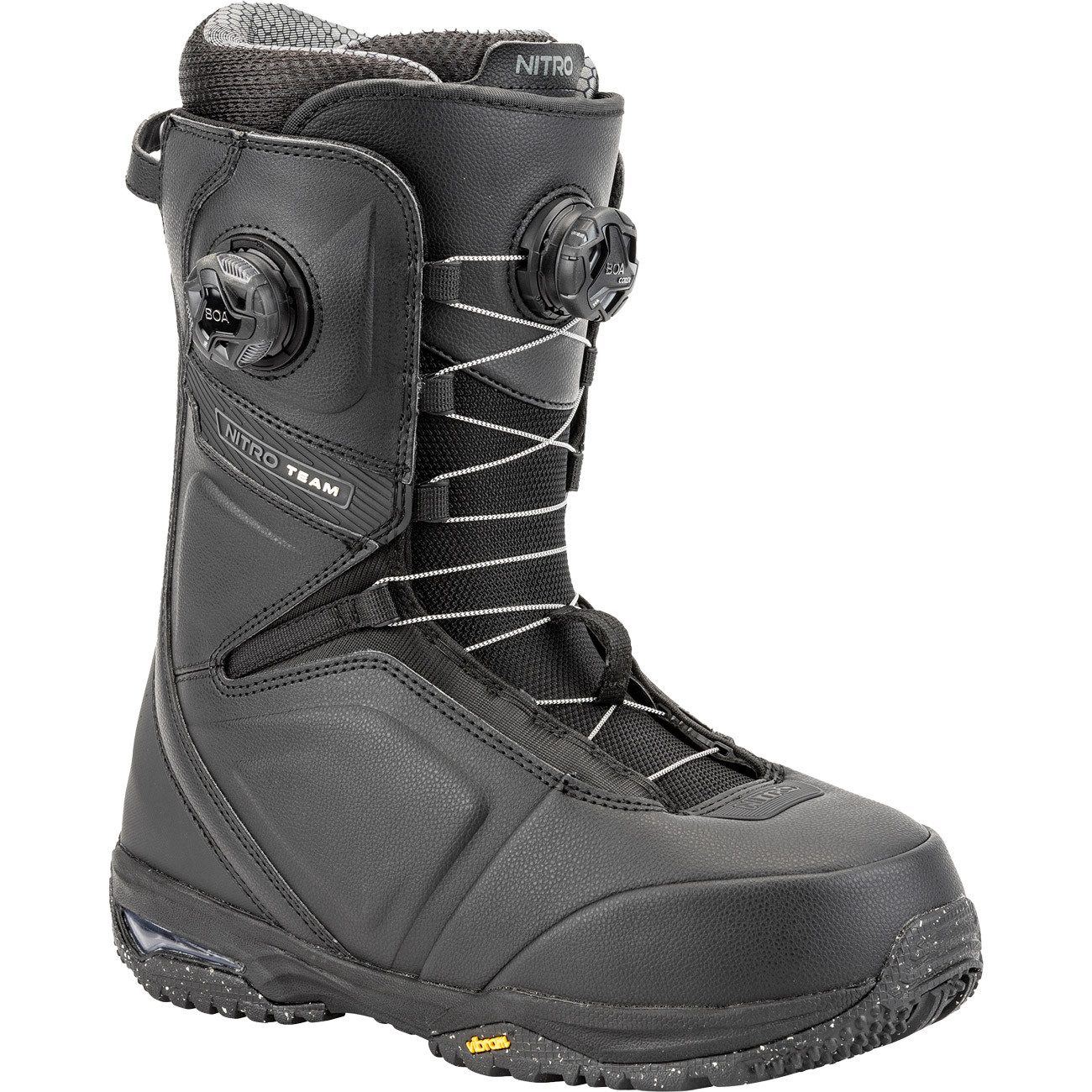 Wenn du auf der Suche nach einem bequemen Boot bist, der eine vertraute Passform bietet, aber den Support der besten Snowboarder der Welt hat, solltest du dich dem Nitro Pro Team anschließen und ein paar Team Boots anziehen. Nitro's meist gefeierter und preisgekrönter Snowboardboot - aus gutem Grund. Der Nitro Team Boot ist die erste Wahl für Snowboarder auf der ganzen Welt, vom Profi bis zum Lokalmatadoren, wegen seiner unbestreitbar bequemen Passform, dem vielseitigen Flex und der bewährten Performance - jetzt mit BOA® erhältlich.Die obere und untere zonale Verstellbarkeit wird durch das BOA® Fit System gewährleistet. Zwei separate Einstellräder und Schnürsenkelwege arbeiten mit der Manschette des Schuhs zusammen, um die Passform in zwei unterschiedliche Zonen zu unterteilen. In der oberen Zone werden Flex und Stabilität eingestellt, während die untere Zone den Vorfußbereich fixiert, um eine bessere Reaktion und Kontrolle zu ermöglichen. Diese zonale Anpassungslösung ermöglicht eine präzise Passform und sorgt für einen maßgeschneiderten Halt. Das System lässt sich schnell und mühelos mit einer Drehung der BOA®-Regler festziehen.