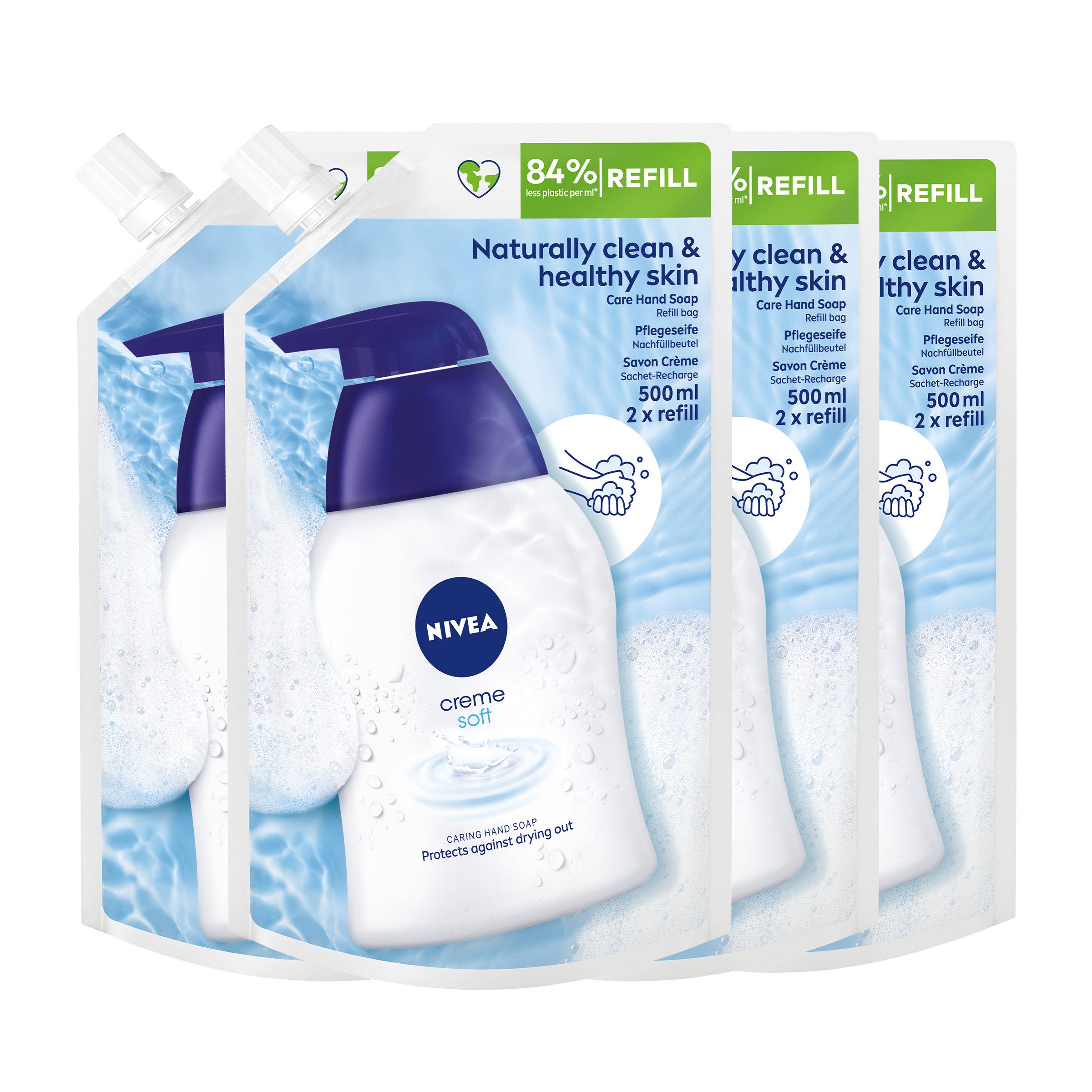 Lieferumfang | NIVEA Flüssigseife Creme Soft Handwäsche schonend Nachfüllbeutel 4 x 500 ml |