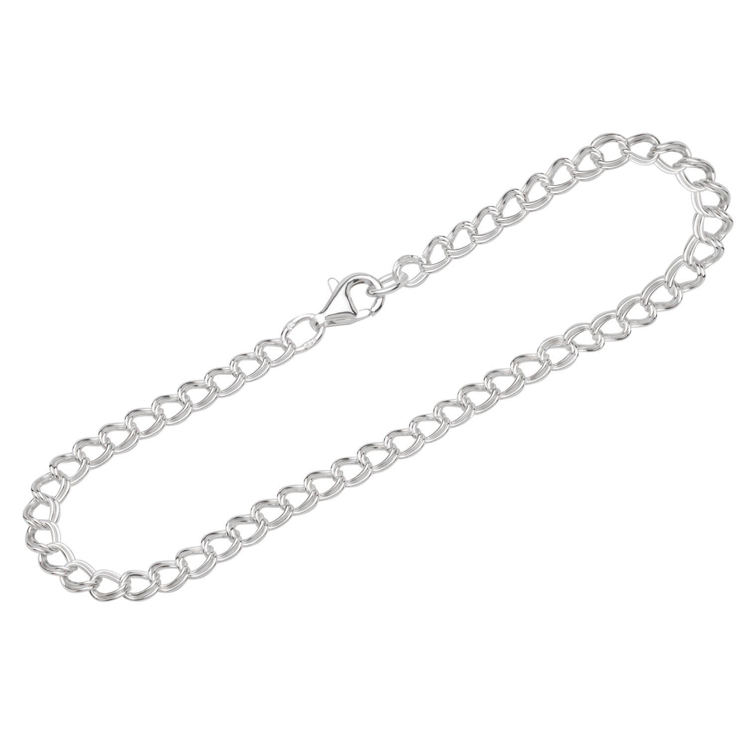 Fußkette 26cm Fußkette 925 Silber Zwillings Panzer 3,4mm breite Damen Fußgliede