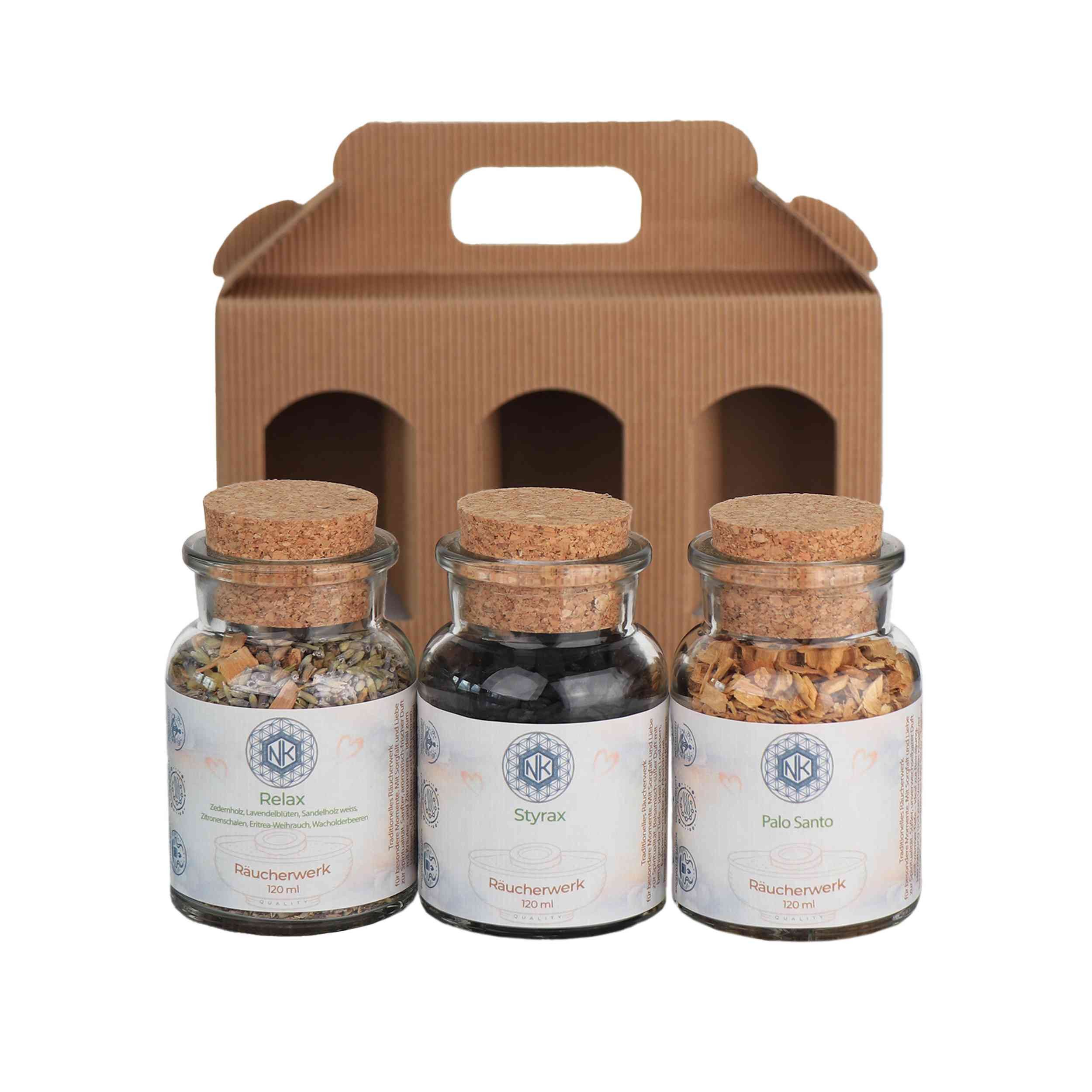 NKlaus Räucherwerk Geschenkset Relax, Styrax & Palo Santo – Drei naturreine Mischungen für entspannende Räuchermomente.