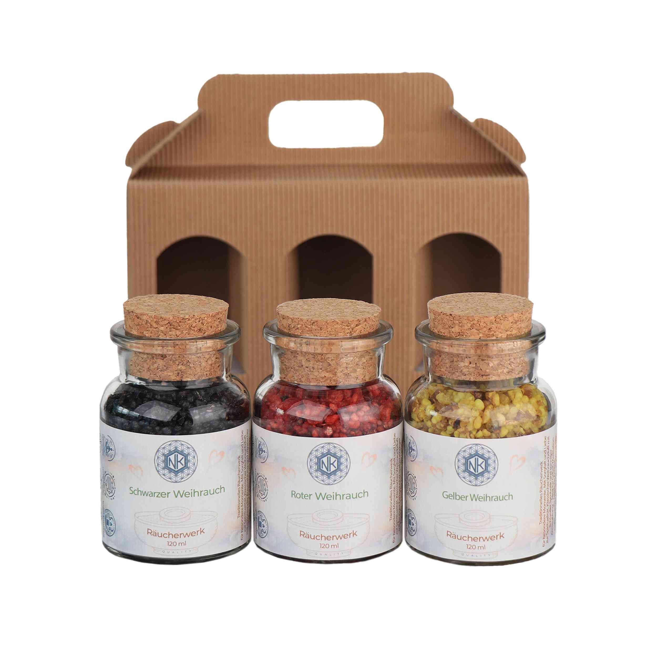 NKlaus Räucherwerk Geschenkset Schwarzer, Roter & Gelber Weihrauch – Drei edle Harze für aromatische Räuchermomente.