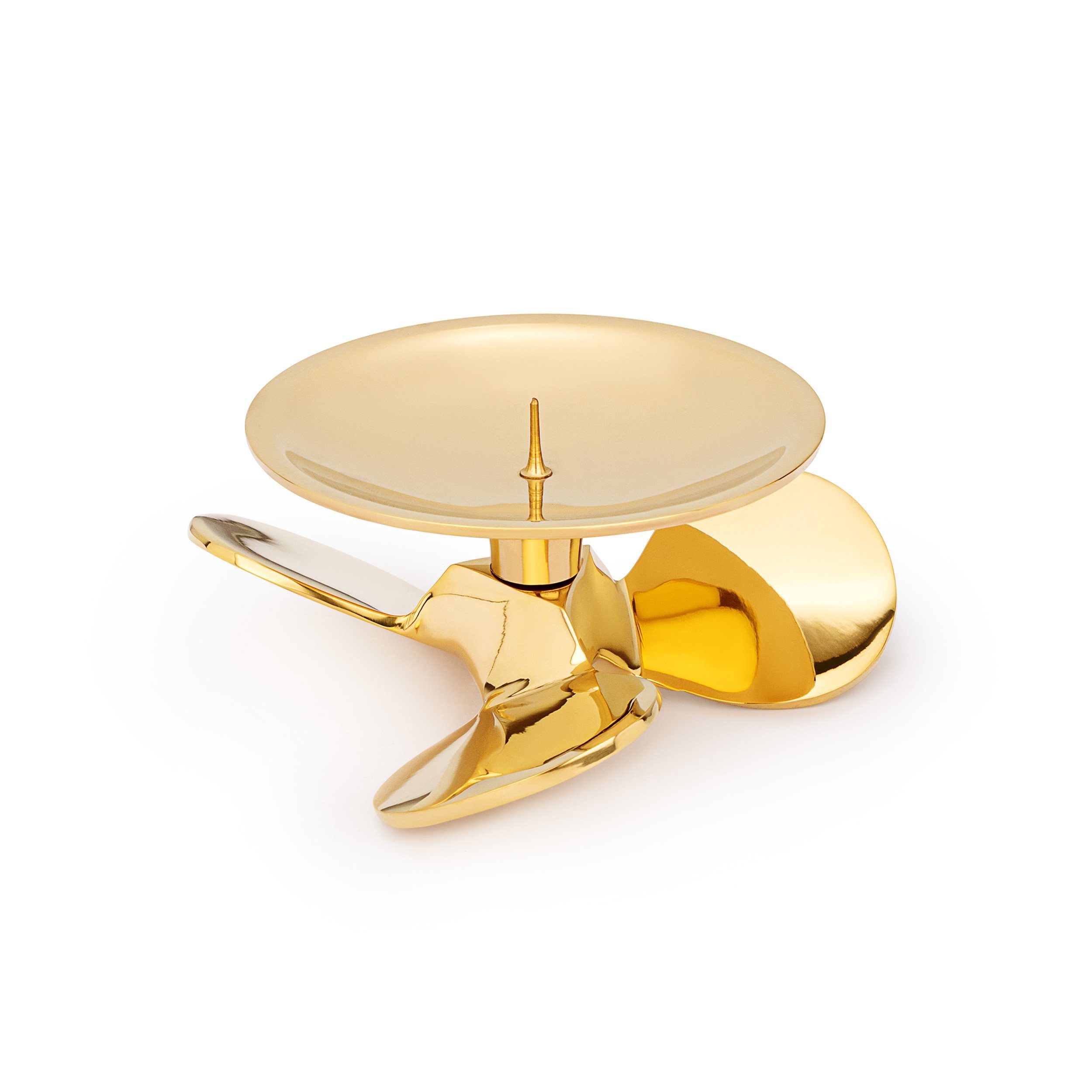 Beschreibung: Maritimer Kerzenständer in Form einer Schiffsschraube aus glänzendem Messing. Mit stabilem Dorn zur sicheren Befestigung der Kerze bis Ø9cm. Das elegante Gold-Finish verleiht jedem Raum maritimen Charme und schützt zuverlässig vor Wachsflecken.