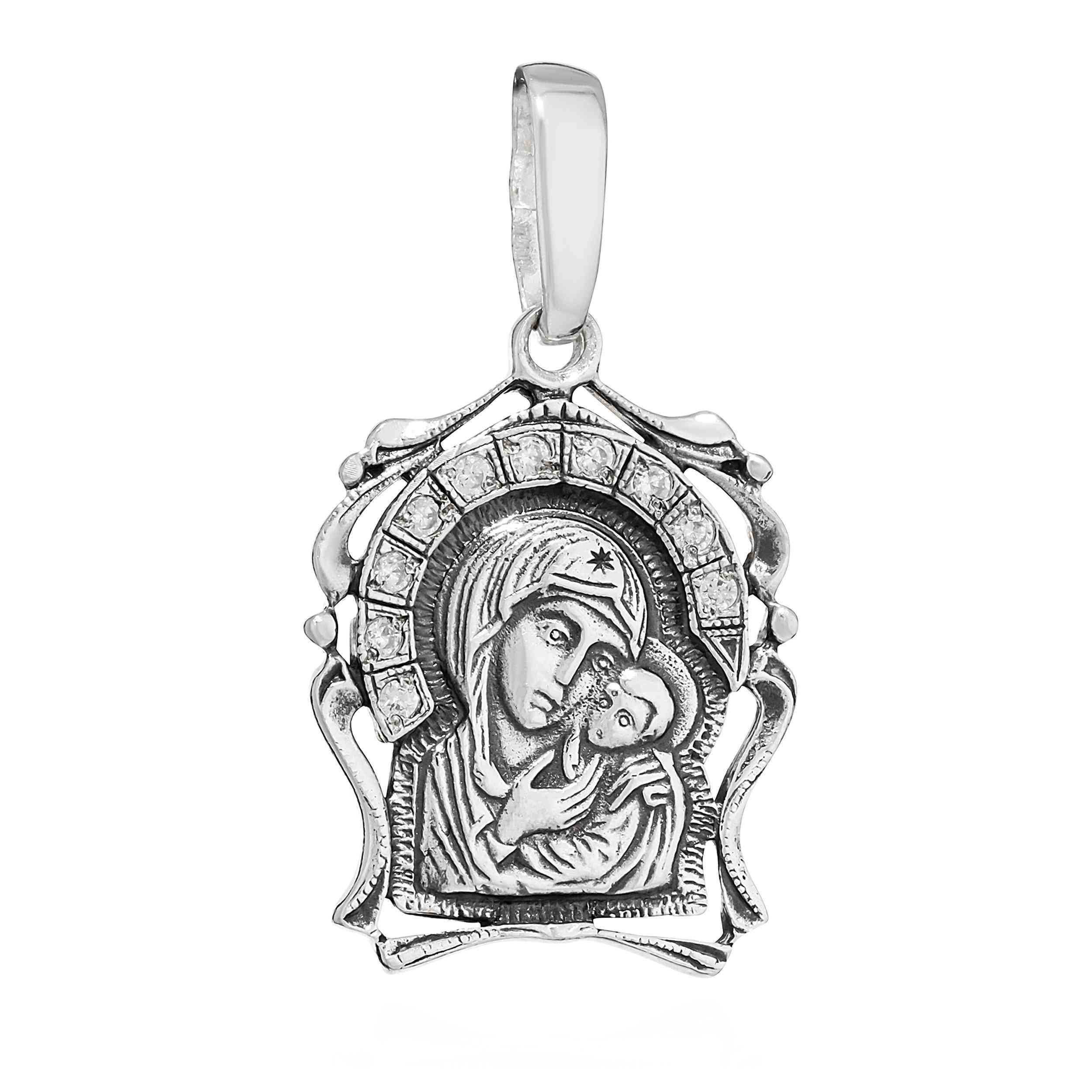 Kettenanhänger Kettenanhänger 925 Silber Gottesmutter von Kasan 10 Zirkonia weiss 23
