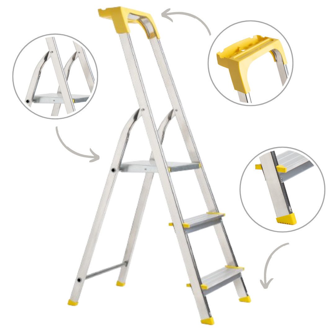Ob Sie Fenster putzen, Glühbirnen wechseln oder einfach nur etwas aus Ihrem Regal nehmen müssen - diese Klapptrittleiter ist ein unverzichtbares Werkzeug für jeden Haushalt oder jedes Büro. Investieren Sie in Qualität und bestellen Sie noch heute Ihre Aluleiter!