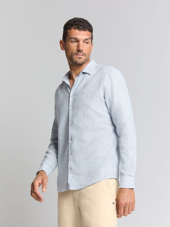 Das No Excess Herren Langarmhemd Vertical Small Stripes With Linen kombiniert sommerliche Leichtigkeit mit stilvollem Design. Der hochwertige Materialmix aus 55 % Leinen und 45 % Baumwolle sorgt für optimale Atmungsaktivität und ein angenehm weiches Tragegefühl. Die feinen vertikalen Streifen verleihen dem Hemd eine moderne, zugleich zeitlose Optik und lassen sich vielseitig kombinieren – von lässig bis elegant.