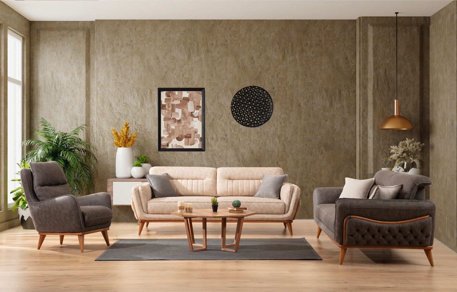Dank der 32-Dichte-Schaumstoffpolsterung erleben Sie bei jedem Sitzen optimalen Komfort, während das robuste Buchenholzgestell Stabilität und Langlebigkeit gewährleistet. Diese Garnitur ist nicht nur optisch ein Highlight, sondern auch äußerst funktional. Die Einzelbett- und Schlaffunktion ermöglichen es, die Sofas schnell und einfach in gemütliche Schlafgelegenheiten zu verwandeln – ideal für spontane Übernachtungsgäste oder entspannte Nächte.