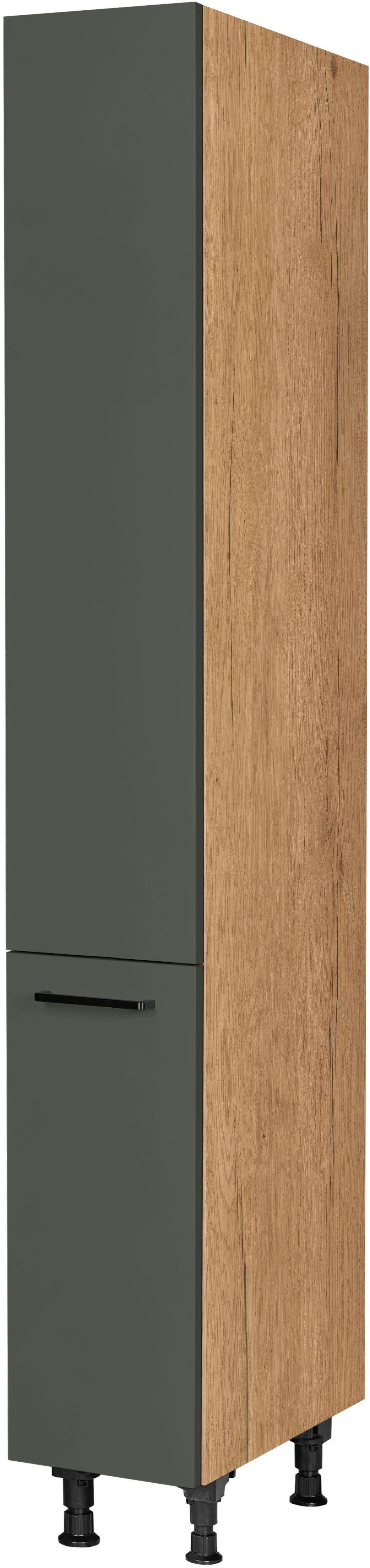Farbe | Front: Lacklaminat Mineralgrün ultramatt, Korpus: Eiche Sierra Nachbildung |