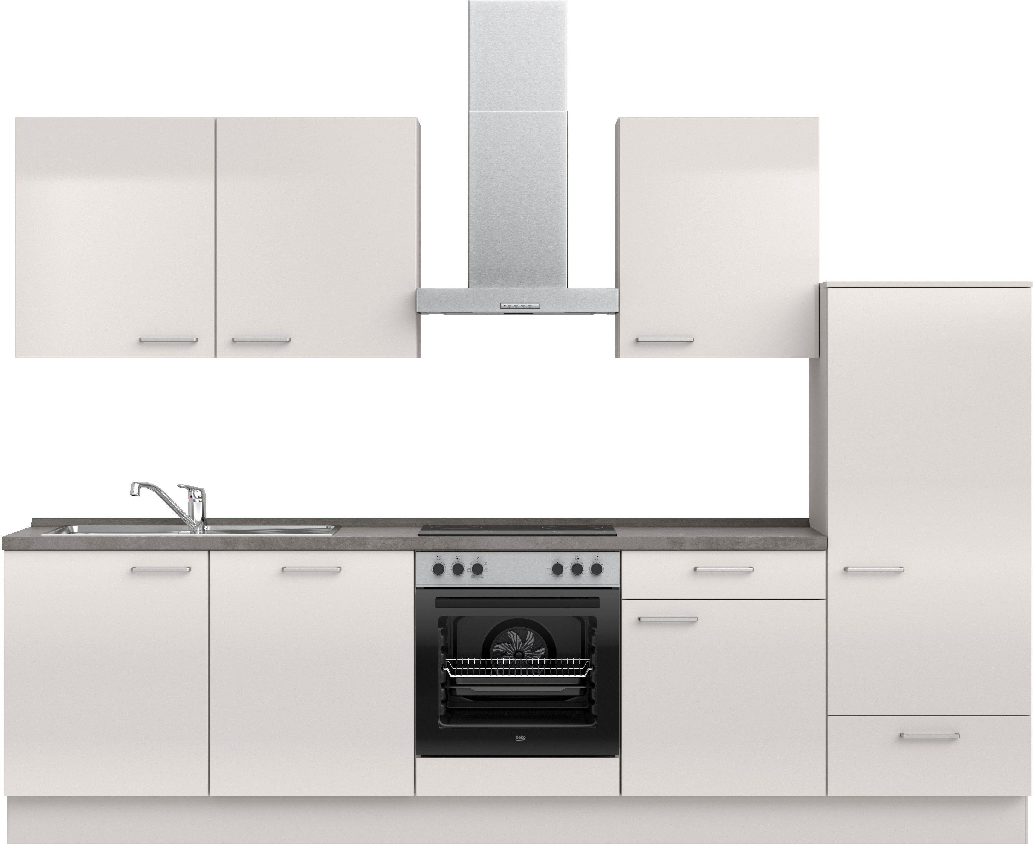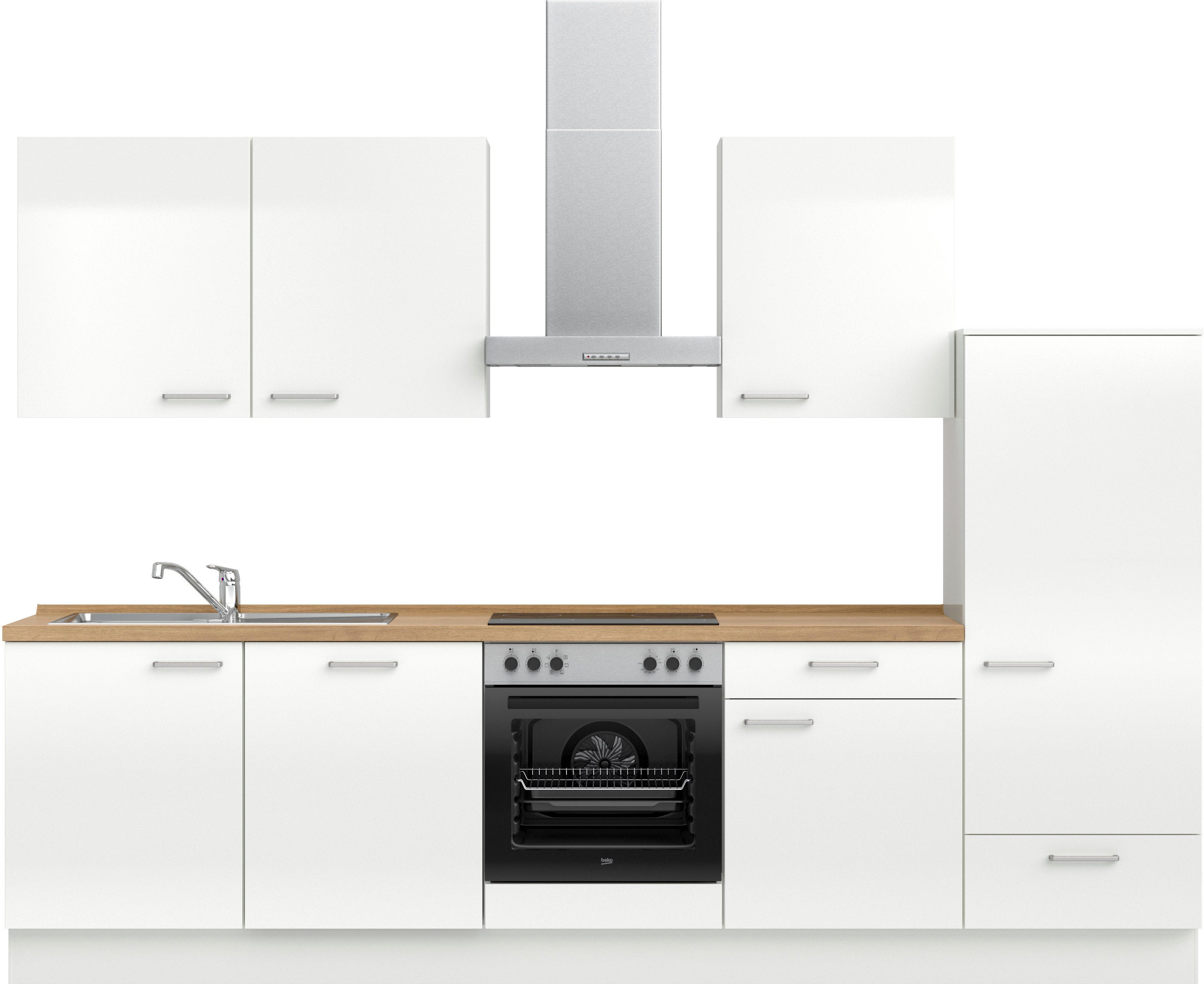Ausstattung | Durchgehende Arbeitsplatte Einlegeböden höhenverstellbar Schubkästen mit Soft-Close-Funktion Türen mit Soft-Close-Funktion Wandabschlussleiste |