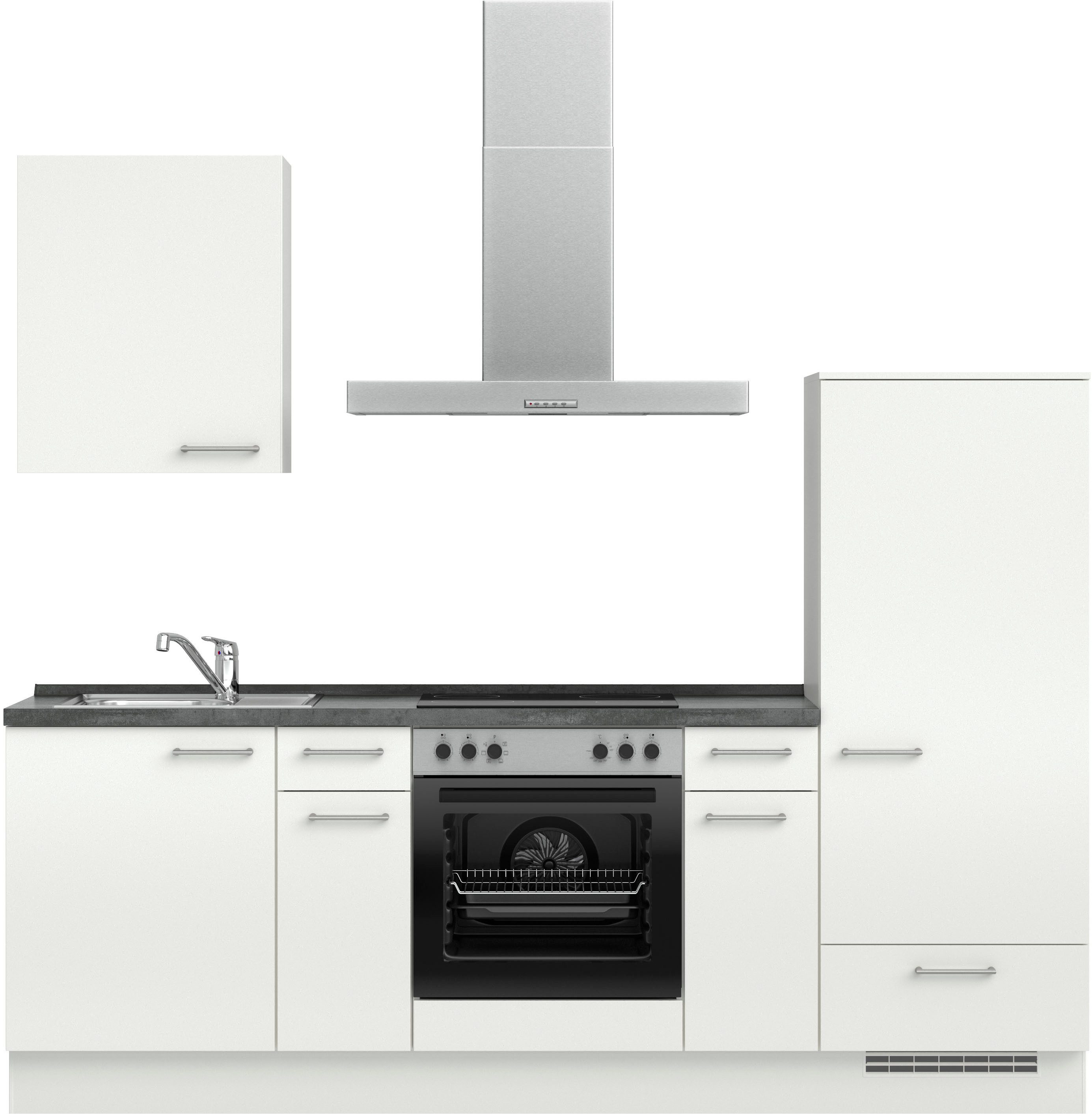 Ausstattung | Durchgehende Arbeitsplatte Einlegeböden höhenverstellbar Schubkästen mit Soft-Close-Funktion Türen mit Soft-Close-Funktion Wandabschlussleiste |