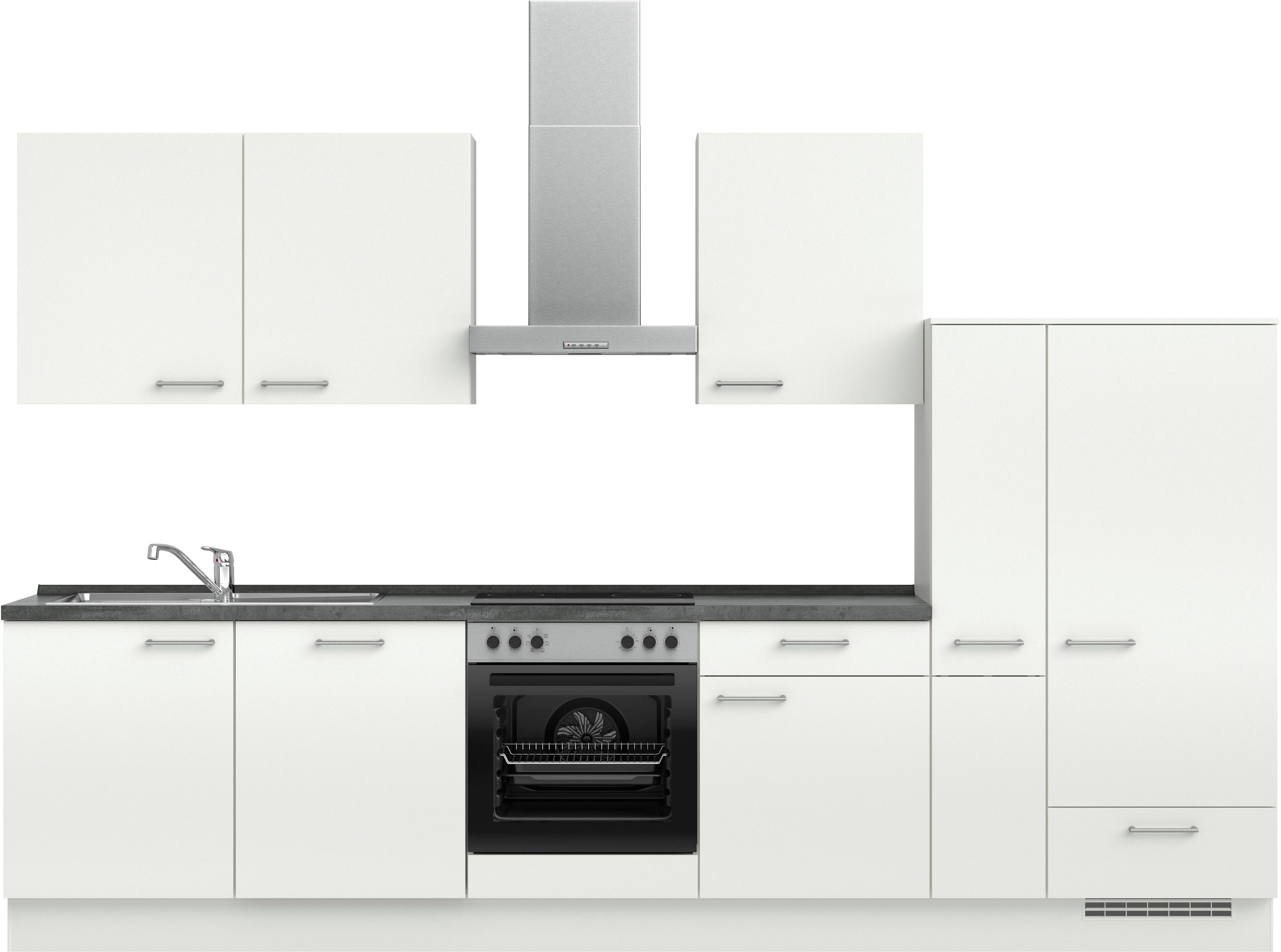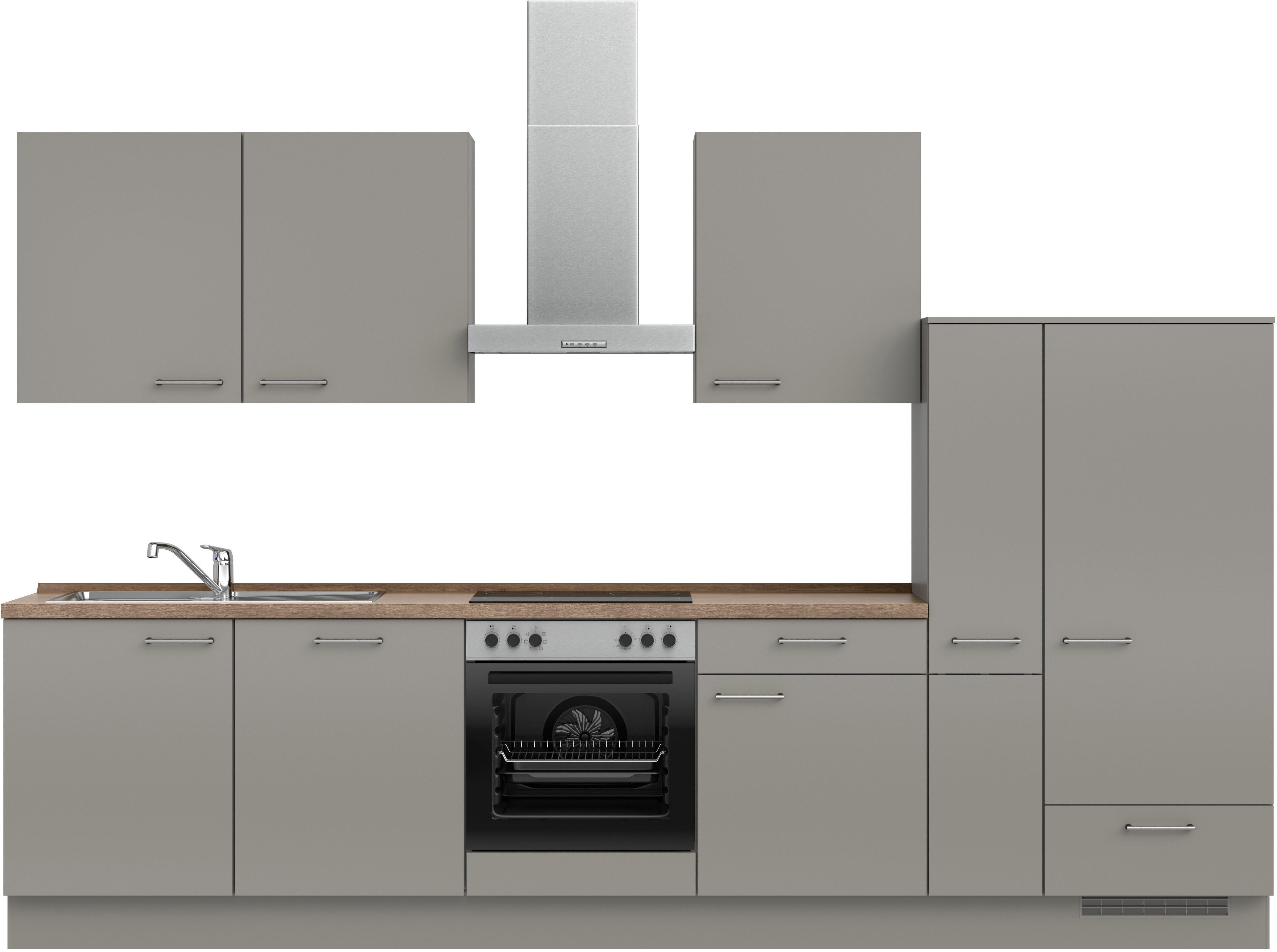 Ausstattung | Durchgehende Arbeitsplatte Einlegeböden höhenverstellbar Schubkästen mit Soft-Close-Funktion Türen mit Soft-Close-Funktion Wandabschlussleiste |