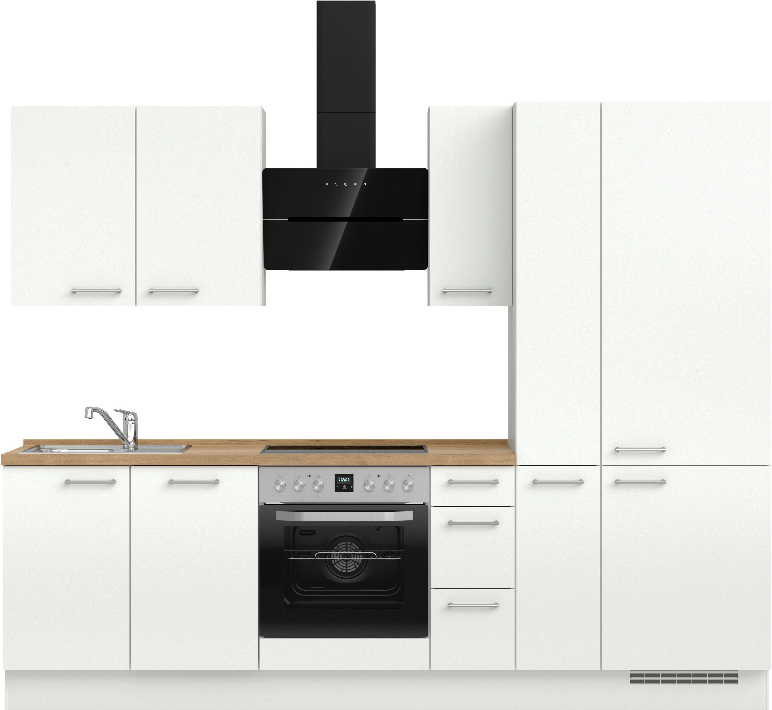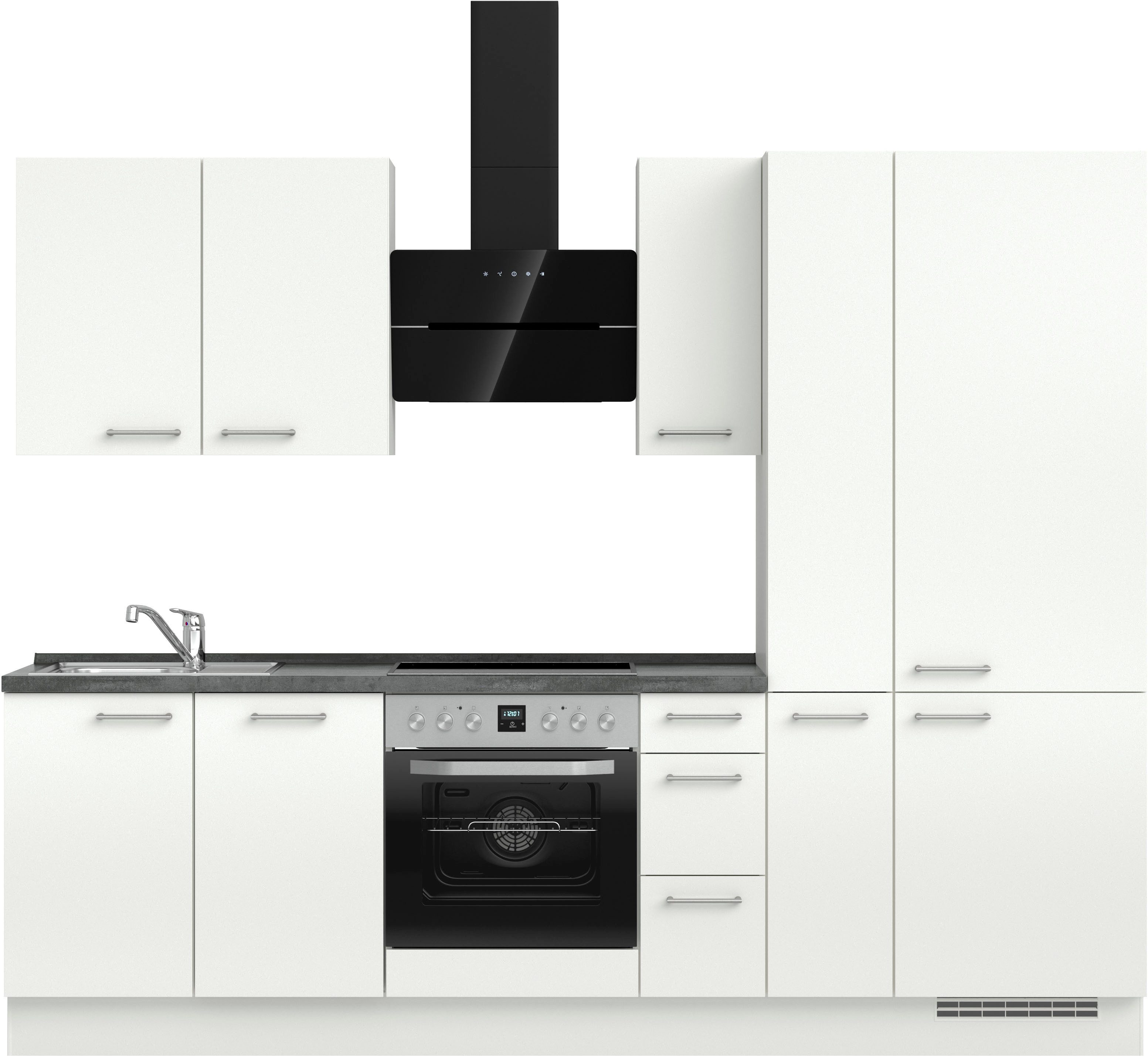 Ausstattung | Durchgehende Arbeitsplatte Einlegeböden höhenverstellbar Schubkästen mit Soft-Close-Funktion Türen mit Soft-Close-Funktion Wandabschlussleiste |