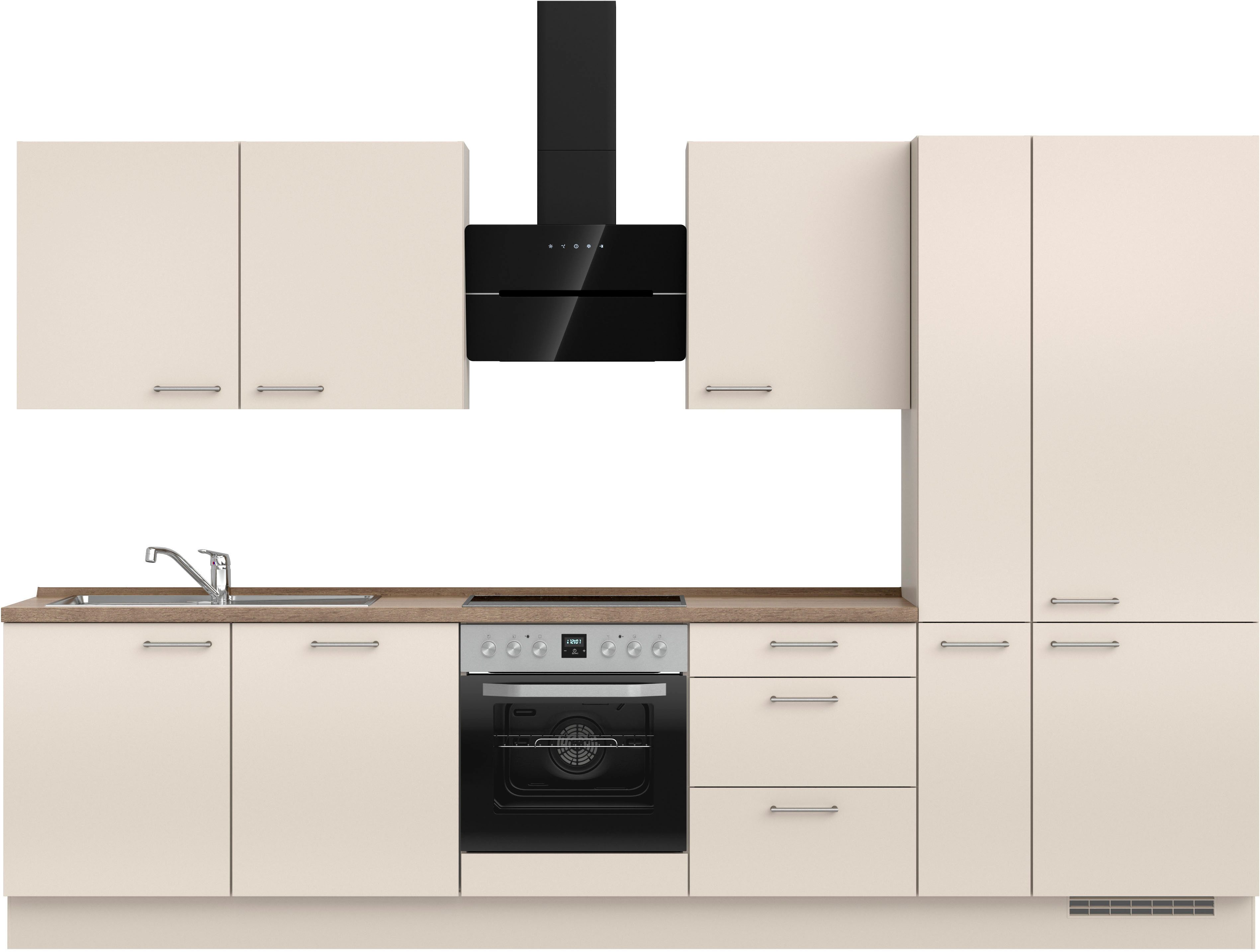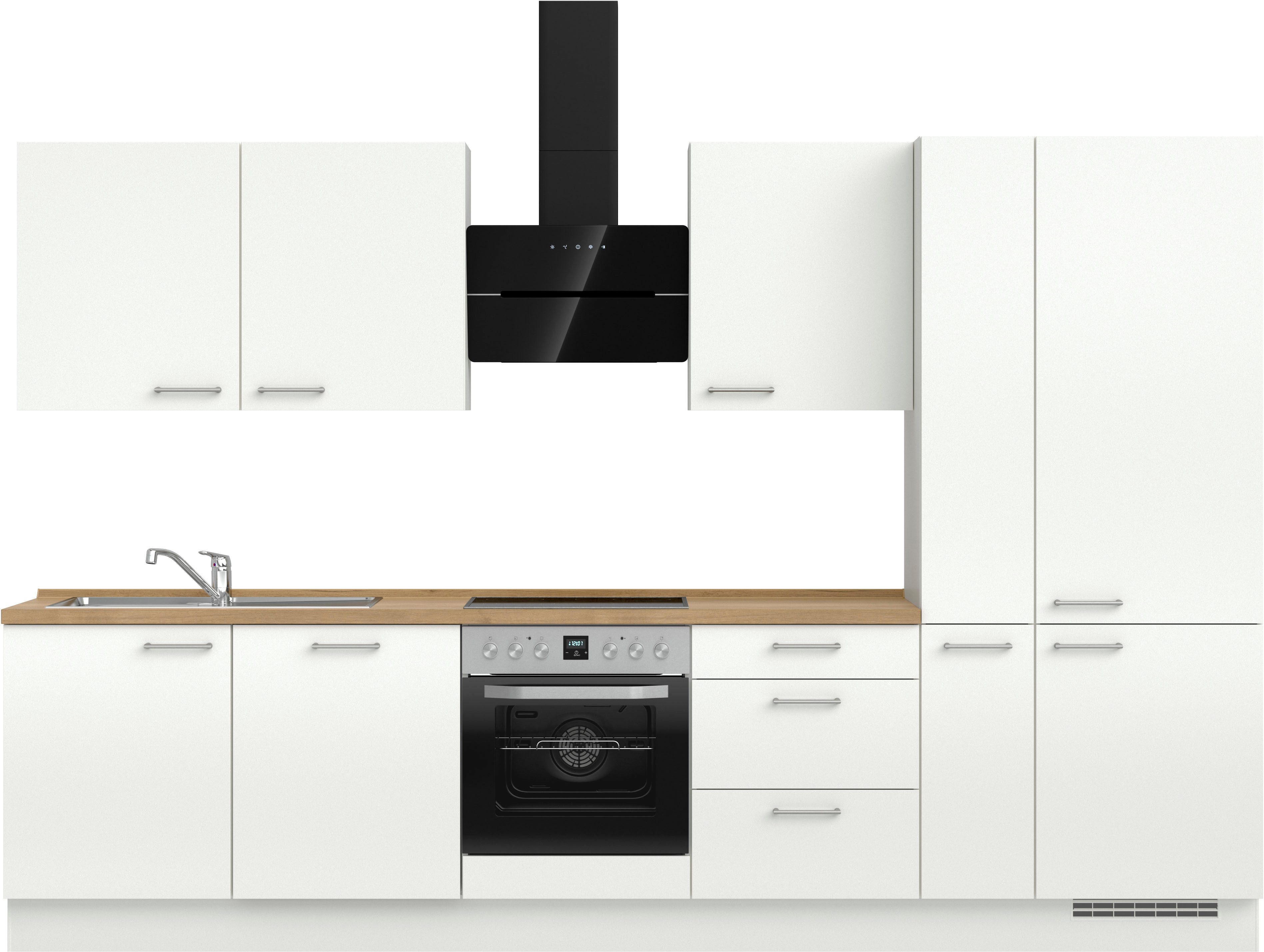 Ausstattung | Durchgehende Arbeitsplatte Einlegeböden höhenverstellbar Schubkästen mit Soft-Close-Funktion Türen mit Soft-Close-Funktion Wandabschlussleiste |