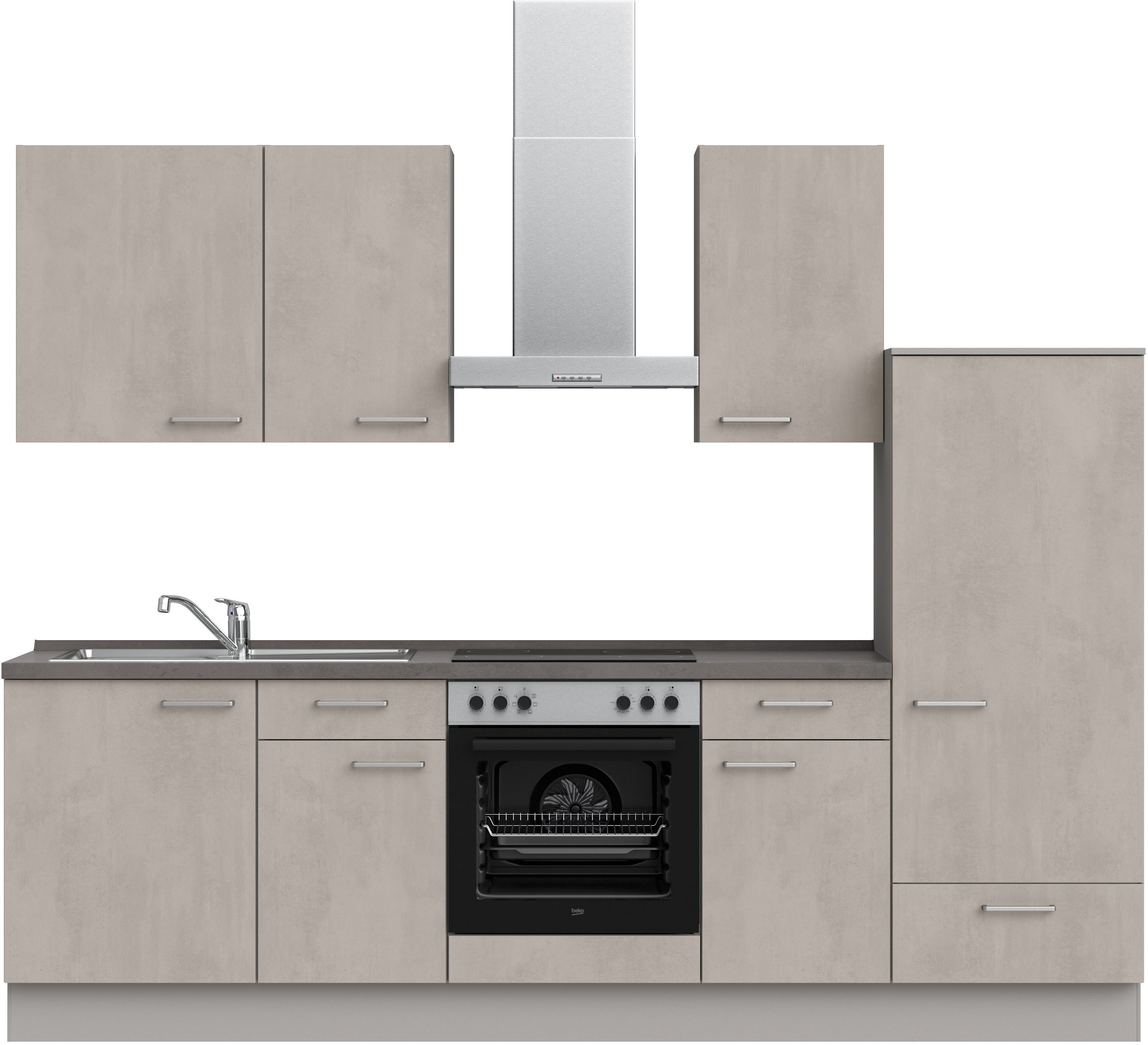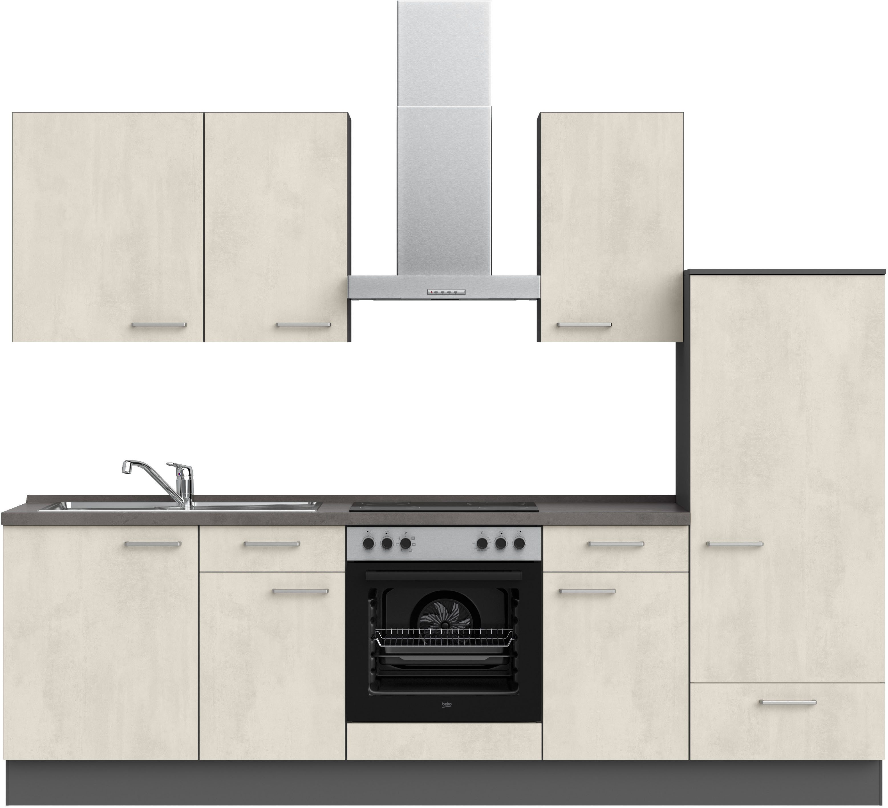 Ausstattung | Durchgehende Arbeitsplatte Einlegeböden höhenverstellbar Schubkästen mit Soft-Close-Funktion Türen mit Soft-Close-Funktion Wandabschlussleiste |