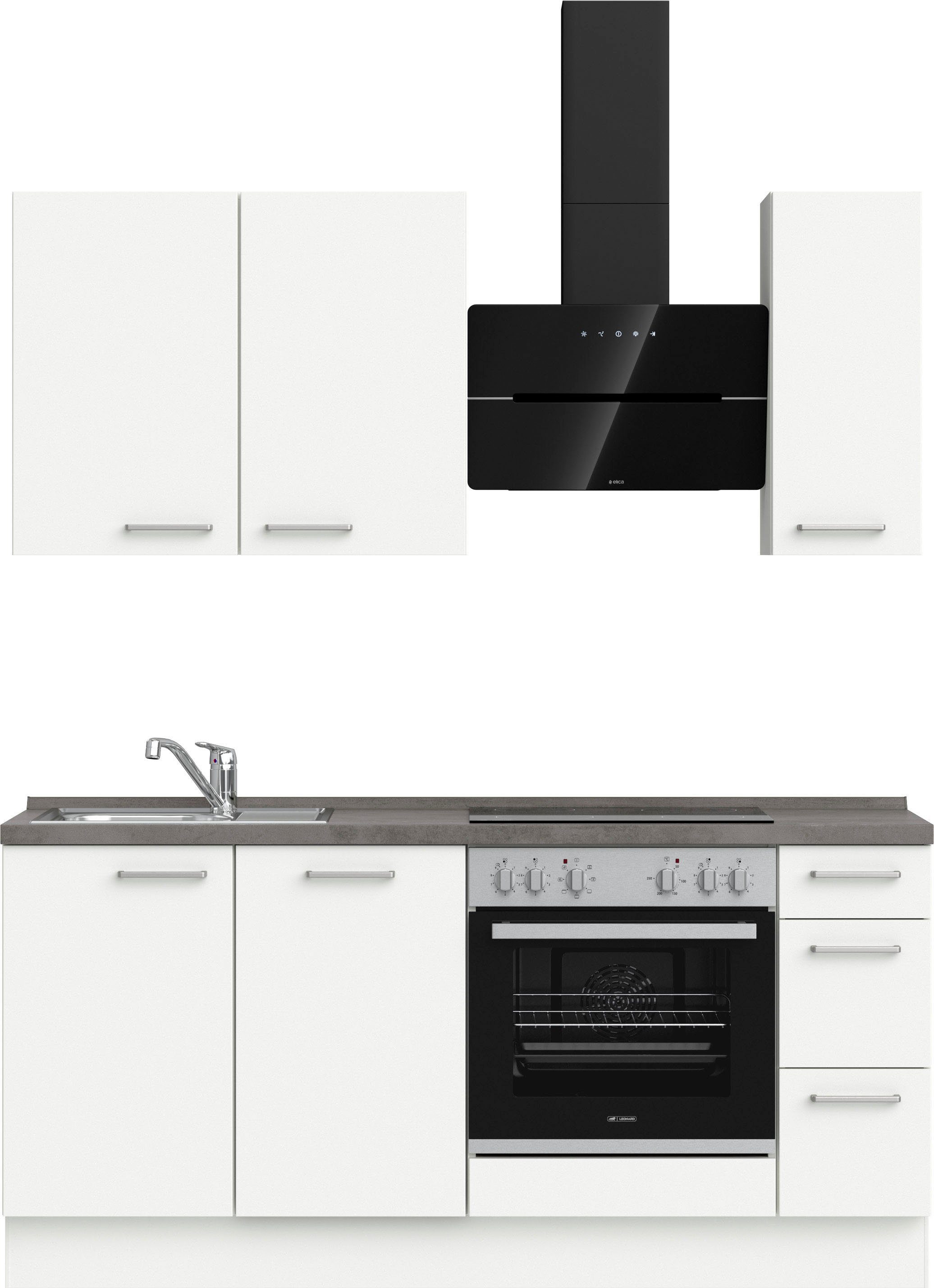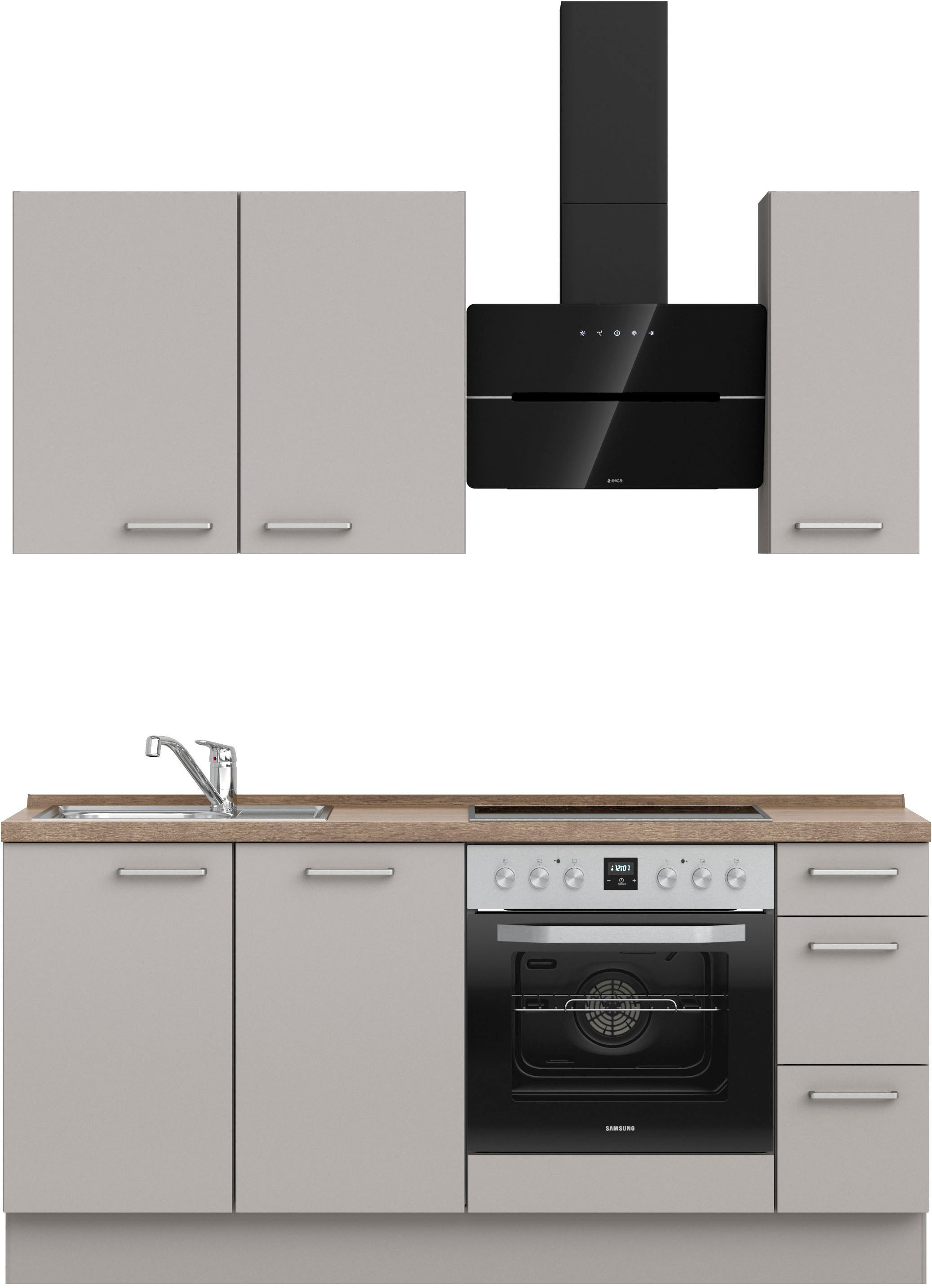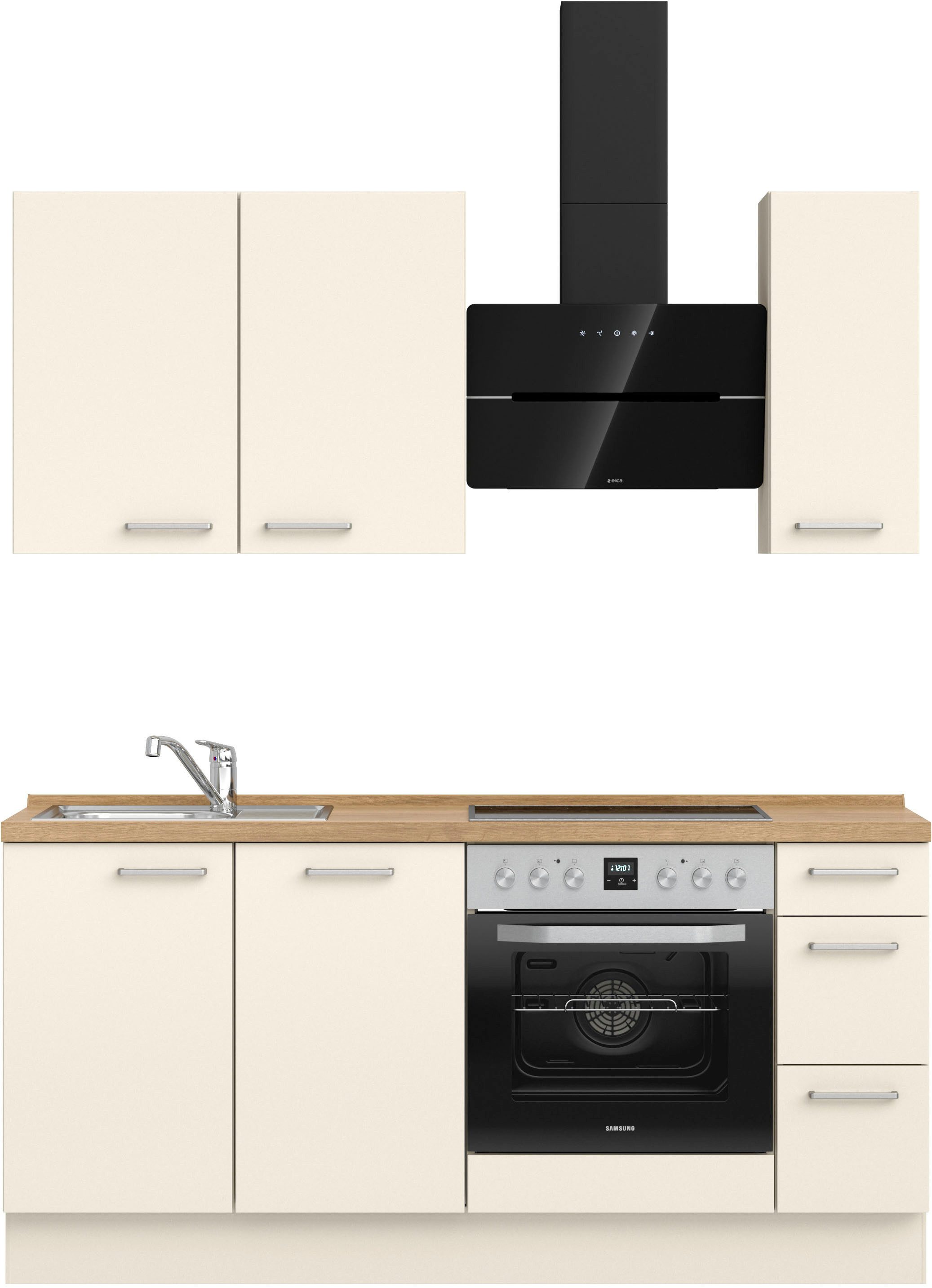 Ausstattung | Durchgehende Arbeitsplatte Einlegeböden höhenverstellbar Metallgriffe Schubkästen mit Soft-Close-Funktion Türen mit Soft-Close-Funktion Wandabschlussleiste |