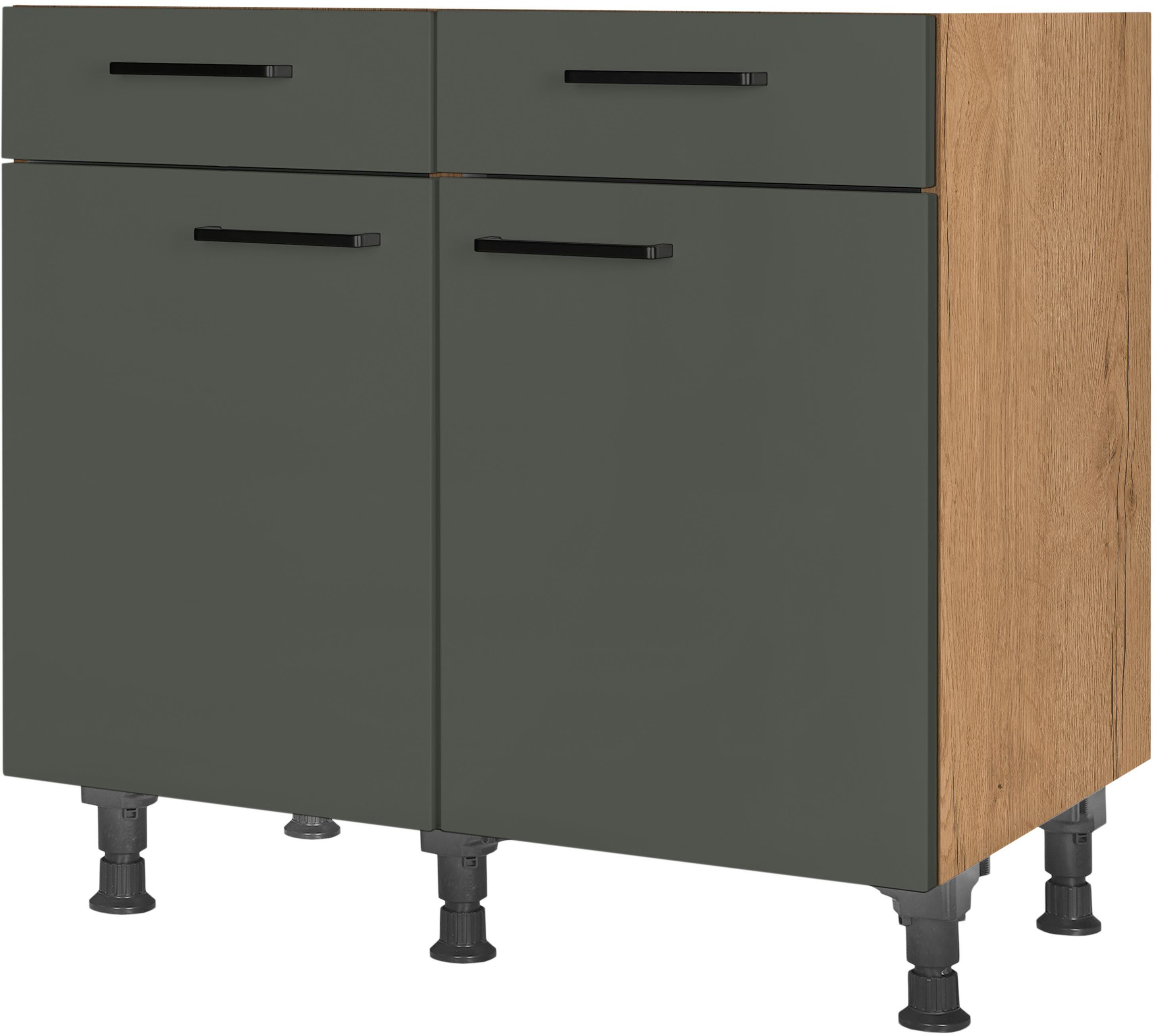 Farbe | Front: Lacklaminat Mineralgrün ultramatt, Korpus: Eiche Sierra Nachbildung |