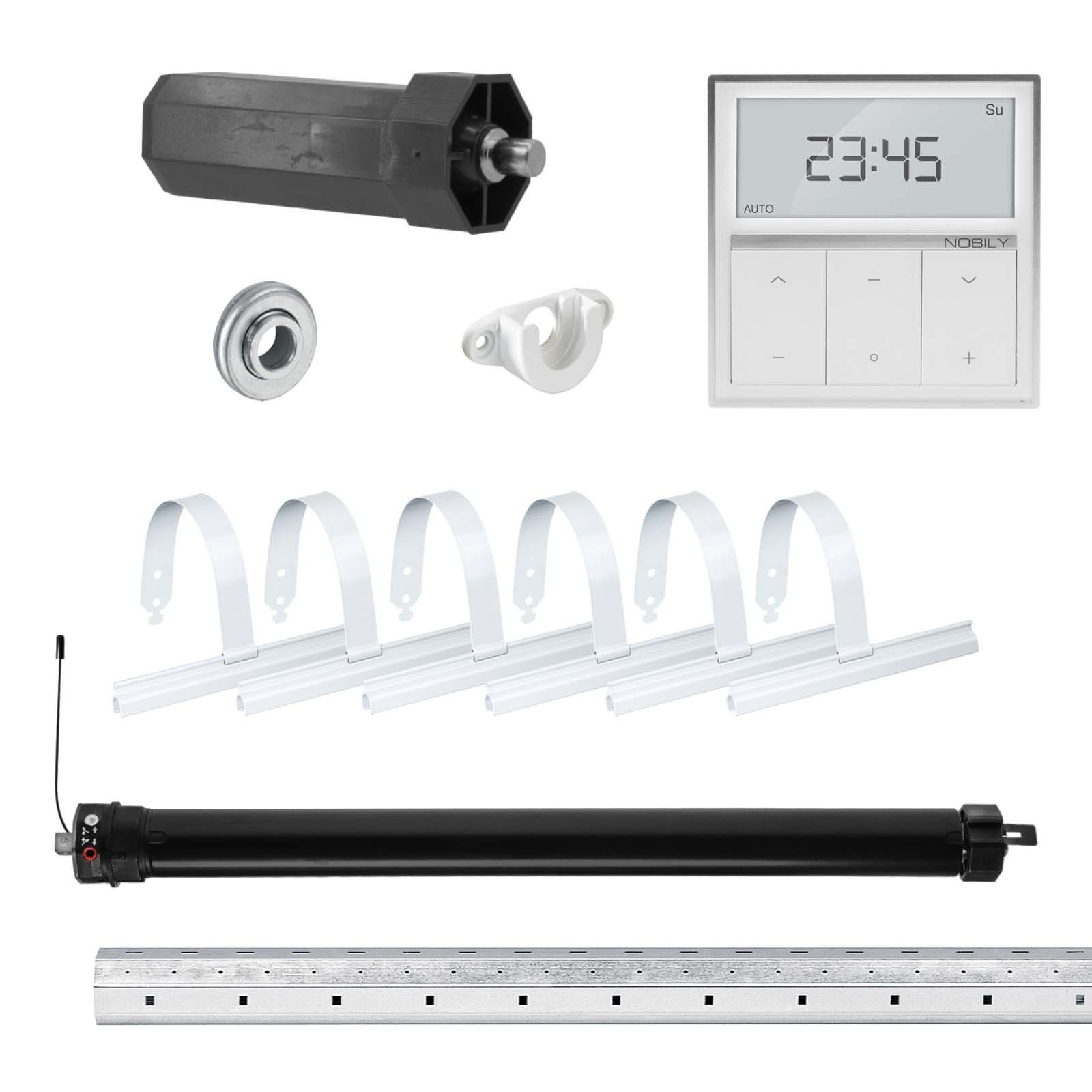 Sie haben sich für unser leistungsstarkes Rollladen-Set in neuester Ausführung entschieden? Eine gute Wahl, bewegen Sie Ihre Rollläden automatisch und sparen Sie Zeit und Geld! Mehr Komfort im täglichen Alltag, die ideale Lösung zum Nachrüsten bei bestehenden Rollläden oder ganz unkompliziert als komplette Neuinstallation. Dank der Funktechnologie müssen bei der Installation der Rollladen-Motoren keine Kabel zwischen Antrieb und Bedienelement verlegt werden. Motoren mit integrierten Funklösungen sind einfach, schnell und kostengünstig montiert. Mehr Komfort im täglichen Alltag, die ideale Lösung zum Nachrüsten bei bestehenden Rollläden oder ganz unkompliziert als komplette Neuinstallation. Die leistungsstarken, tausendfach bewährten und robusten mechanischen Funk-Antriebe für Rollladen, Sonnenschutz, Screens und Filmleinwände. 1-Kanal Wandsender zur Steuerung von Rollladenmotoren (od. Jalousie,- Markisenmotoren). Nur für unsere NOBILY PR Funkmotoren und Funkempfänger für einen Motor oder einer Motorgruppe. - geeignet als Rollladen- und Jalousiesteuerung - handliches und edles ansprechendes Exquisit-Design - sicheres Funkprotokoll - magnetische Wandhalterung inklusive - nachträgliches Integrieren in vorhandene Installation (durch Kopierfunktion des Funkcodes) - raumübergreifendes Steuern einer Gruppe von Rollladenmotoren durch hohe Funkreichweite