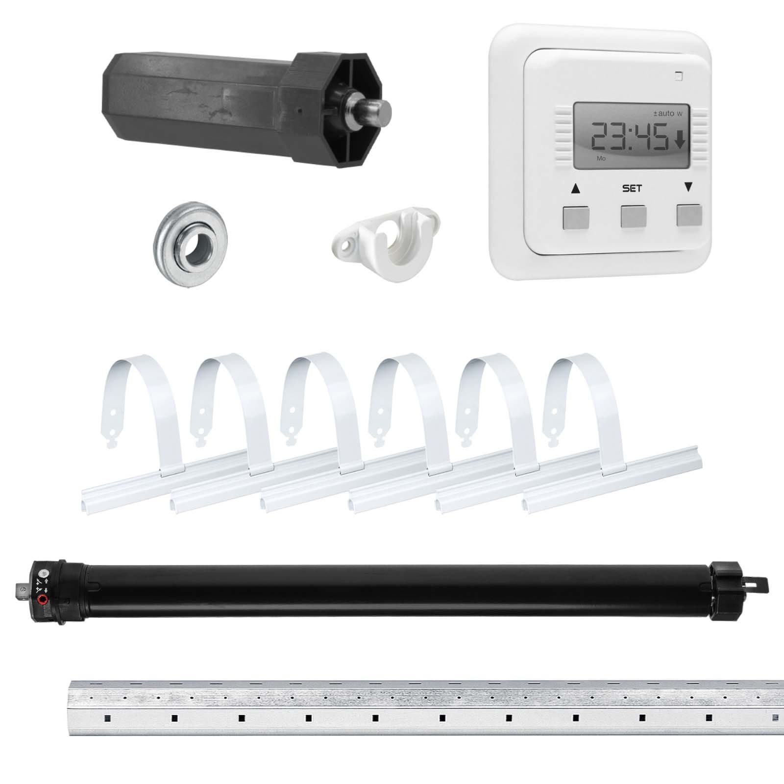 Sie haben sich für unser leistungsstarkes Rollladen-Komplett-Set in neuester Ausführung entschieden? Eine gute Wahl, bewegen Sie Ihre Rollläden automatisch und sparen Sie Zeit und Geld! Mehr Komfort im täglichen Alltag, die ideale Lösung zum Nachrüsten bei bestehenden Rollläden oder ganz unkompliziert als komplette Neuinstallation Die Rollladenzeitschaltuhr SIMU Relax ist unschlagbar und überzeugend! Klar im Design - mit allen Funktionen, die eine moderne Rollladen - Zeitschaltuhr vereint. Unsere Relax ist tausendfach erfolgreich in Objekten und Privatwohnbereichen im Einsatz. Produkthighlights - Tagesprogramm - Wochenprogramm - Handbetrieb (Tippbetrieb) - Automatikbetrieb (Selbsthaltung) - Security- Urlaubsschaltung (Zufallsgenerator) - Memory- Funktion (Schnellprogrammierung) - Gangreserve (± 0,45 h) - geeignet als Rollladen- und Jalousiesteuerung - Oberfläche ultraweiß - inkl. Unterputzrahmen