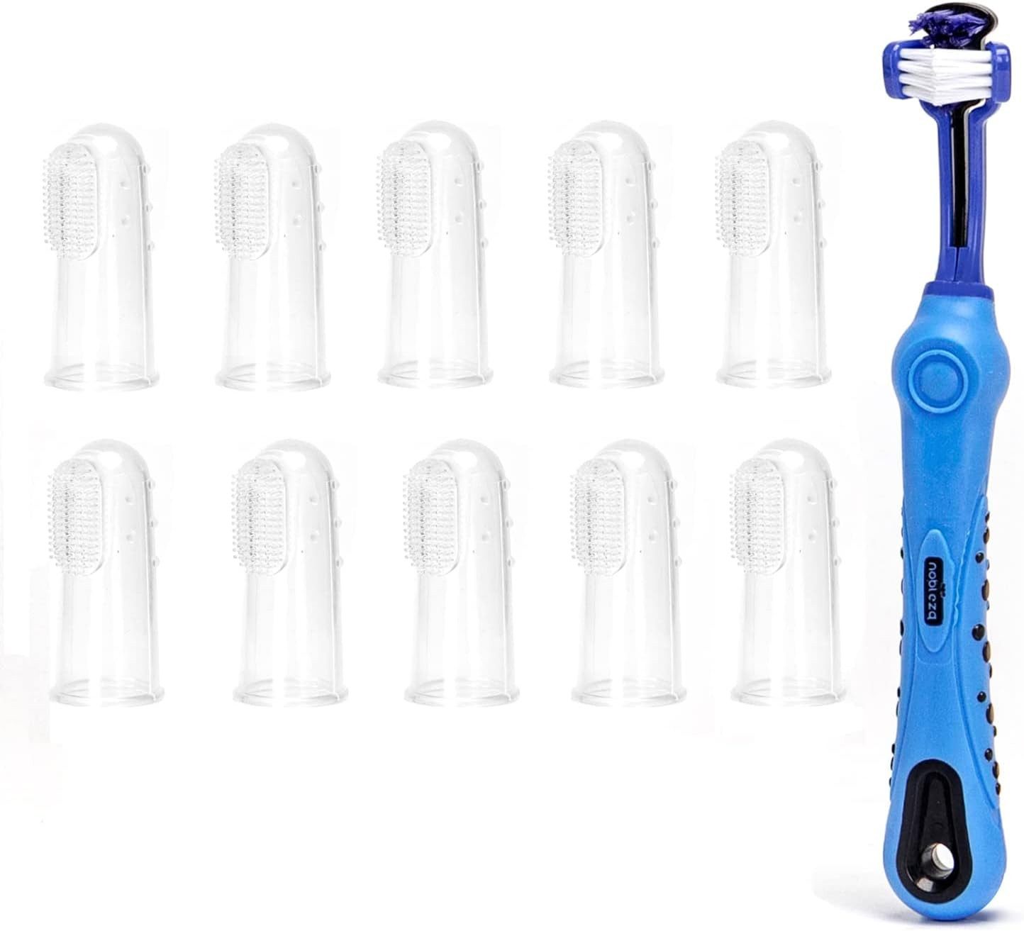 Das Nobleza Zahnpflegeset für Hunde bietet eine umfassende Lösung zur optimalen Mundhygiene Ihres Vierbeiners. Dieses Set enthält eine innovative Zahnbürste mit 3-seitigen Borsten, die eine gründliche Reinigung der Zähne und des Zahnfleischs ermöglicht. Durch das einzigartige Design erreicht die Bürste alle Zahnflächen gleichzeitig, was die Zahnpflege effizienter und weniger stressig für Ihr Haustier macht. Zusätzlich umfasst das Set zehn Fingerzahnbürsten, die eine sanfte und präzise Reinigung der Zähne erlauben. Diese Fingerzahnbürsten sind besonders nützlich für Hunde, die empfindlich auf herkömmliche Zahnbürsten reagieren, oder für Bereiche, die schwer zugänglich sind. Mit den Fingerzahnbürsten können Sie die Zähne Ihres Hundes gezielt und behutsam reinigen, was besonders bei Welpen oder älteren Hunden von Vorteil ist. Das Nobleza Zahnpflegeset ist aus hochwertigen, tierfreundlichen Materialien hergestellt, die sicher und effektiv sind. Regelmäßige Zahnpflege mit diesem Set hilft, Plaque und Zahnsteinbildung zu verhindern, Mundgeruch zu reduzieren und die allgemeine Zahngesundheit Ihres Hundes zu fördern. Indem Sie die Zähne Ihres Hundes mit diesem umfassenden Pflegeset reinigen, tragen Sie wesentlich zu seiner allgemeinen Gesundheit und seinem Wohlbefinden bei. Dieses Set ist ideal für Hundebesitzer, die Wert auf eine gründliche und schonende Zahnpflege legen. Das ergonomische Design der Zahnbürste und die Vielseitigkeit der Fingerzahnbürsten machen die Zahnpflege zu einem einfachen und angenehmen Ritual für Sie und Ihren Hund. Mit dem Nobleza Zahnpflegeset für Hunde können Sie sicherstellen, dass Ihr Haustier stets gesunde Zähne und ein frisches Lächeln hat.
