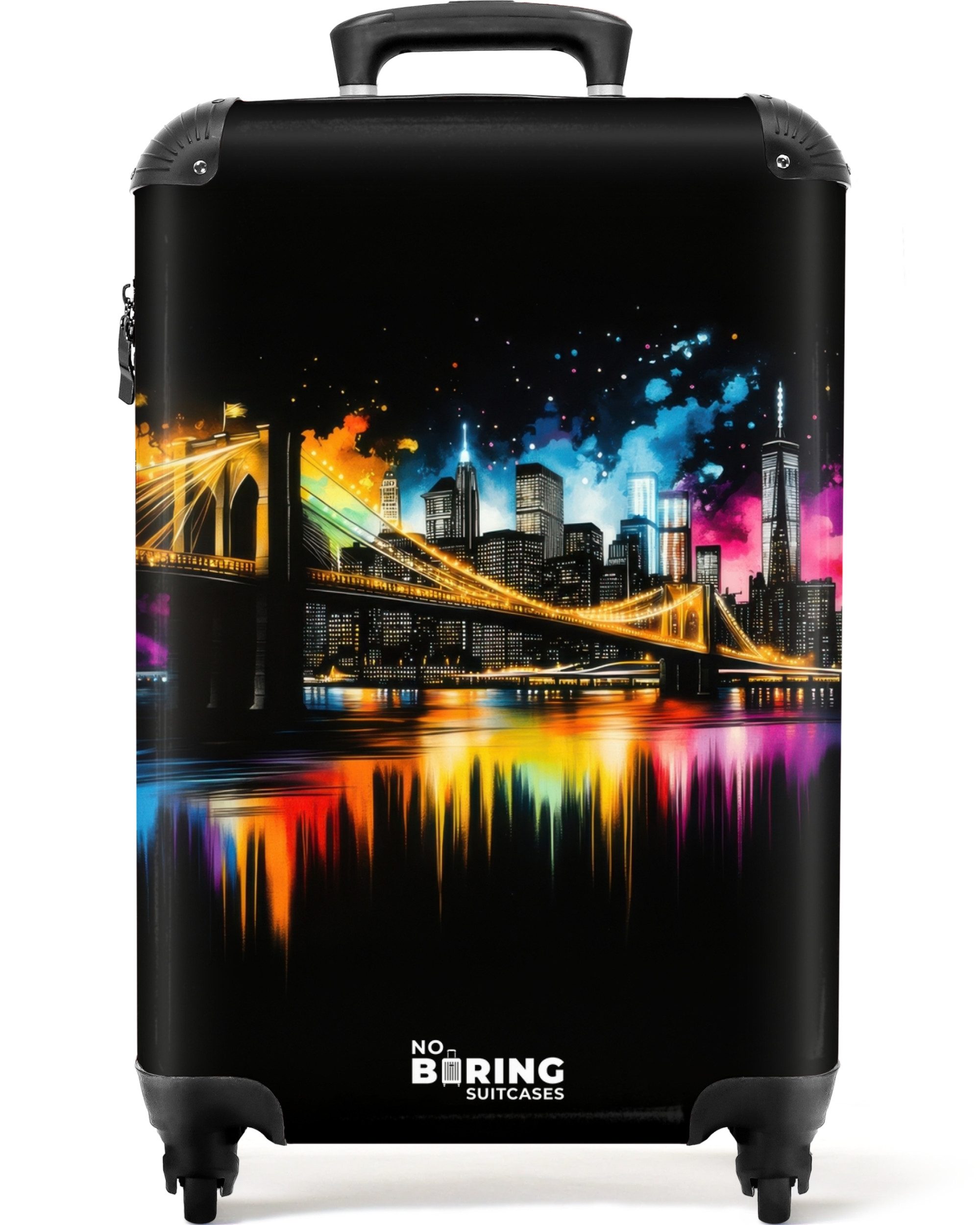 Das robuste Gehäuse des Hartschalenkoffers überzeugt durch einen UV-beständigen Druck in brillanter Farbqualität auf der Vorderseite. Die gerippte Struktur auf der Rückseite gibt dem Koffer mehr Stabilität und eine verbesserte Strapazierfähigkeit. Die moderne Hochglanzoberfläche besteht aus hochwertigem ABS-Material mit einer kratzfesten Beschichtung aus Polycarbonat und sorgt so dafür, dass Du noch viele Urlaubsziele mit Deinem neuen Lieblingskoffer bereisen kannst. Dank der vier wendigen Rollen und dem verstellbaren Teleskopgriff ist dieser Trolley ein solider und komfortabler Begleiter für jede Reisesituation. Das integrierte TSA-Zahlenschloss ist einfach zu bedienen und bietet dennoch zuverlässigen Schutz für Deine persönlichen Habseligkeiten.