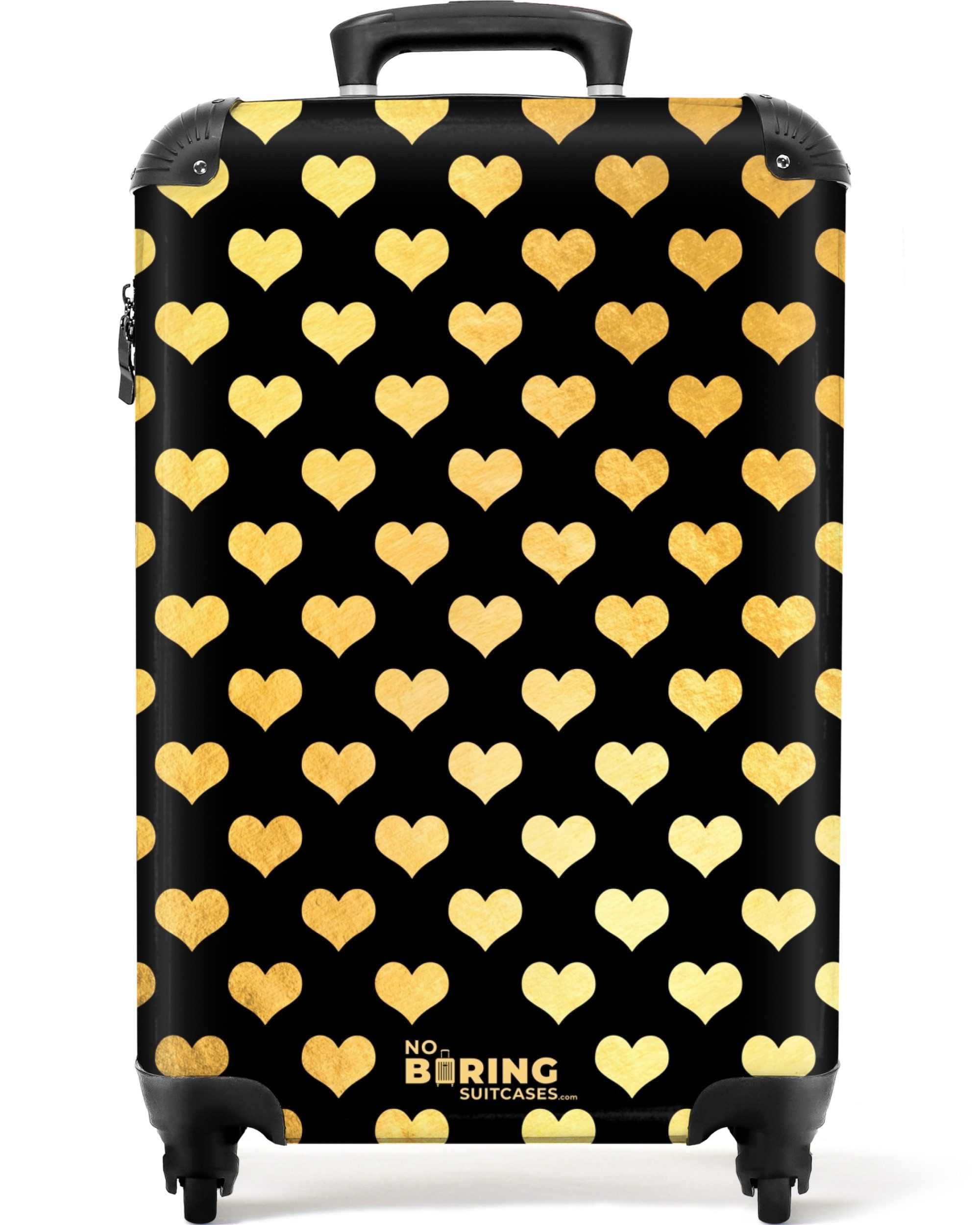 Ein geordnetes Muster aus goldenen Herzen auf schwarzem Hintergrund schafft einen auffälligen und schicken Kontrast, wobei das schimmernde Gold aus dem Bild herauszuspringen scheint. Die Herzen in der Mitte sind heller als die am äußeren Rand, was der Komposition mehr Tiefe verleiht.Optik | bedruckt |