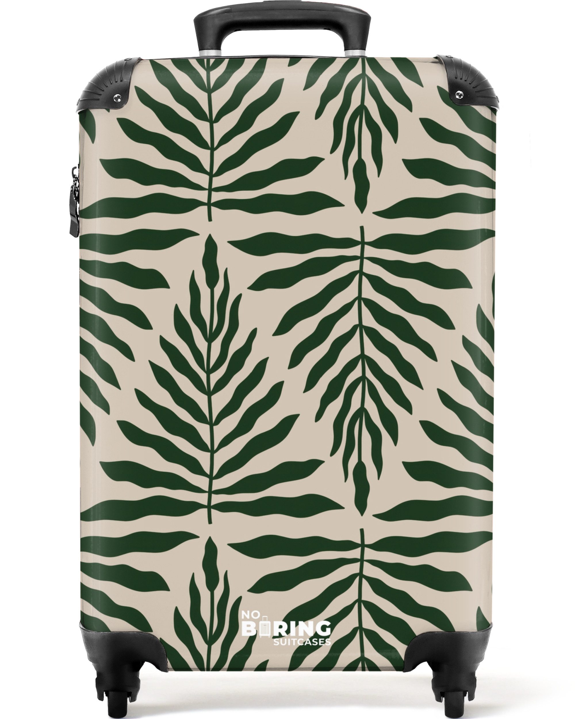 Beigefarbener Hintergrund mit einem regelmäßigen Muster aus dunkelgrünen Blättern.Optik | bedruckt |