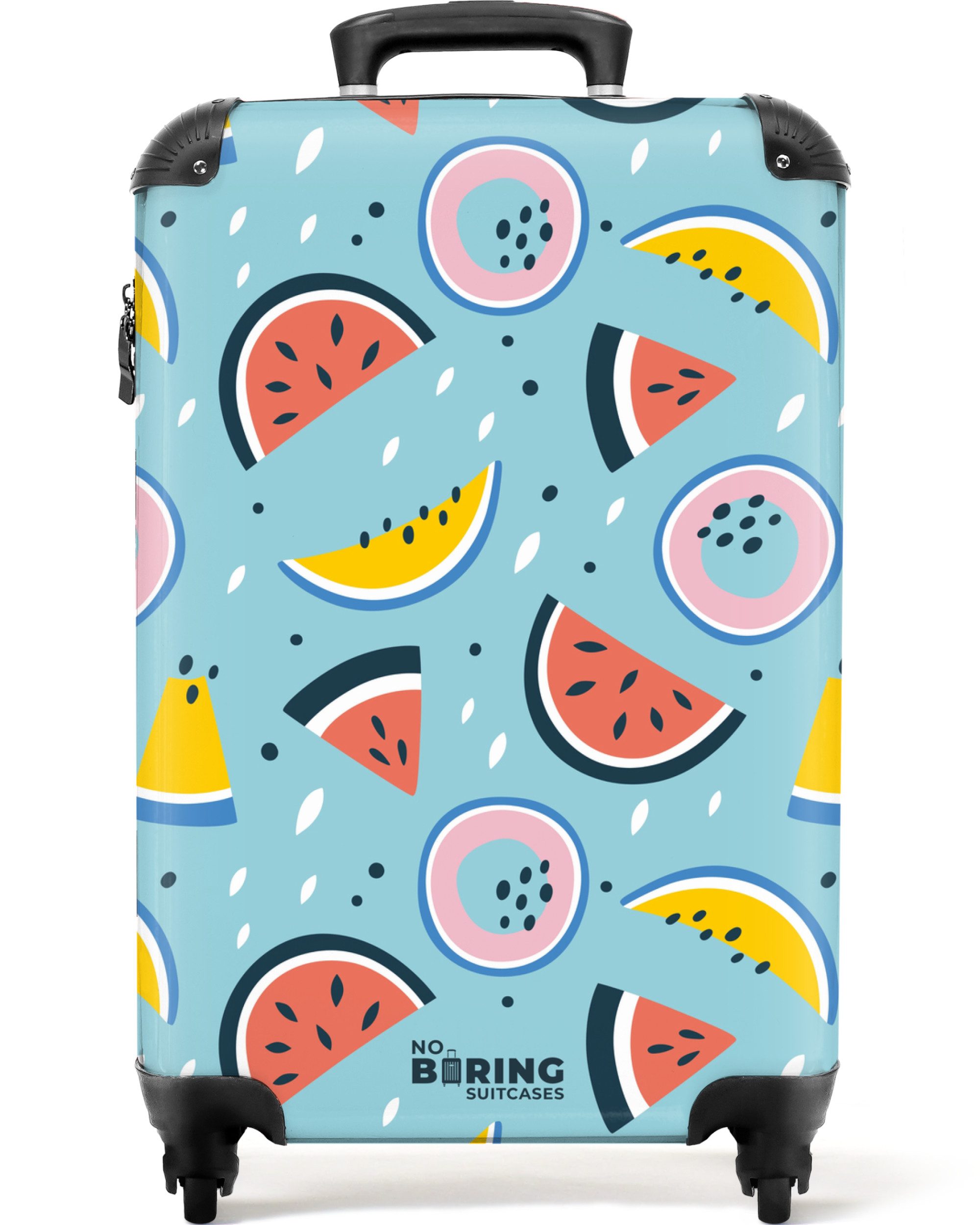 Das lustige Motiv dieses farbenfrohen Koffers wird in gestochen scharfer Premiumqualität gedruckt und stellt sicher, dass Du Deinen Koffer nie wieder an der Gepäckausgabe übersehen wirst. Zusätzlich bringt Dich das fröhlich bunte Design garantiert in Urlaubsstimmung! Deinen tristen Koffer kannst Du ab jetzt getrost zuhause lassen - dieser trendige Trolley ist das ultimative Gepäckstück und ein absoluter Hingucker für alle Reisen.