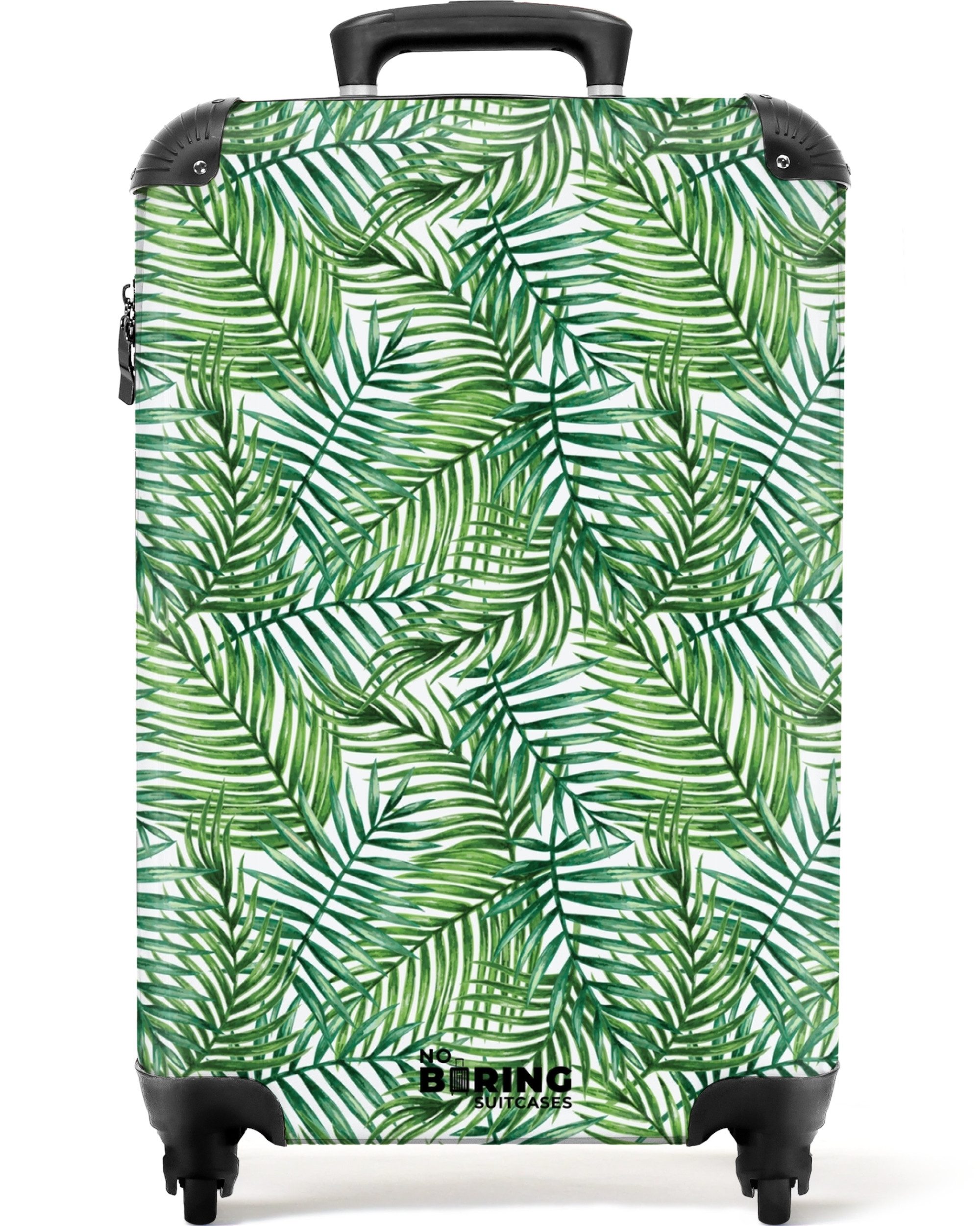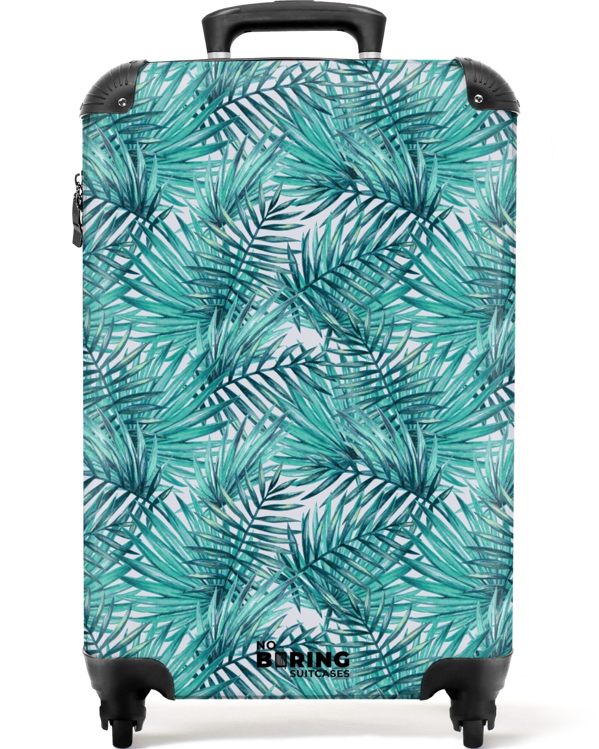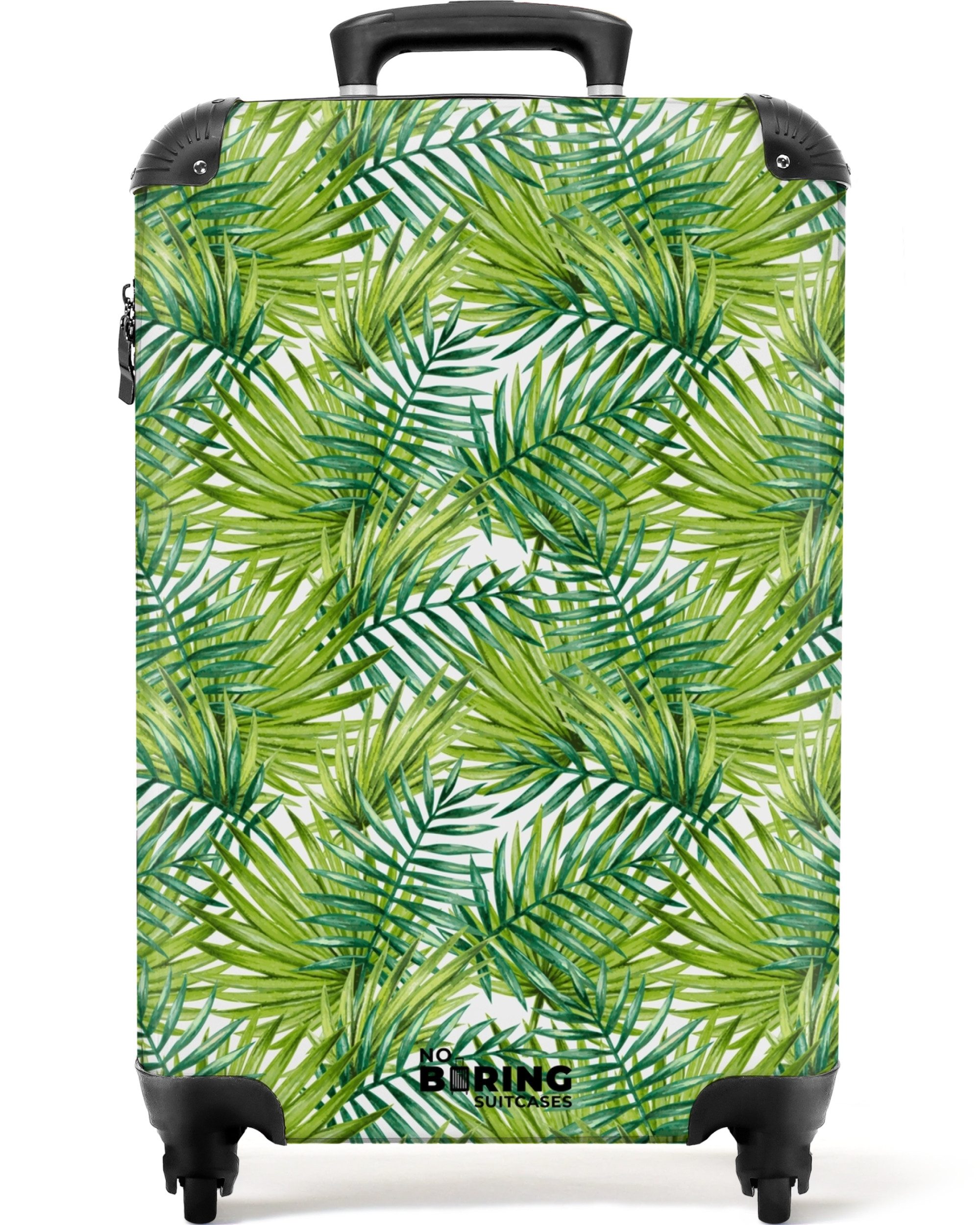 Ein sich wiederholendes Muster aus handgemalten Palmenblättern in verschiedenen Grüntönen, die sich vor einem strahlend weißen Hintergrund abzeichnen. Die Blätter überlappen sich spielerisch und schaffen einen luftigen, tropischen Look.Optik | bedruckt |