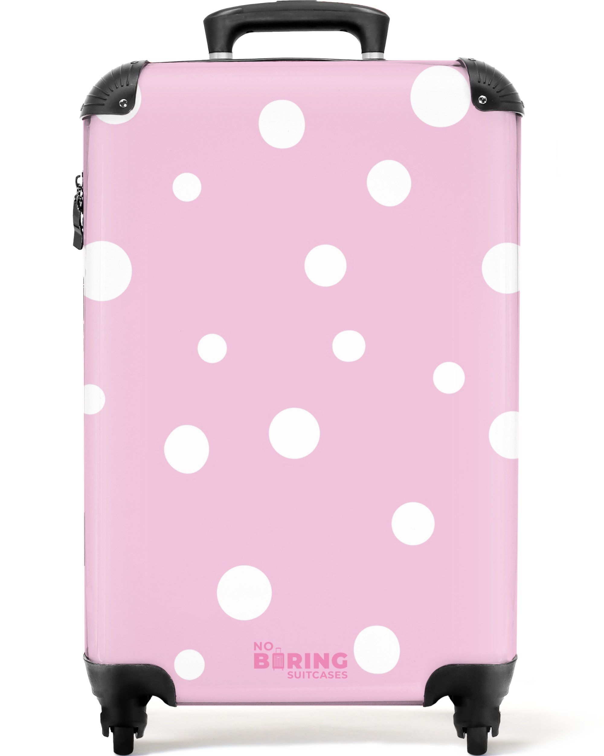 Verspieltes Muster aus weißen Punkten in verschiedenen Größen auf einem schlichten rosa Hintergrund.Optik | bedruckt |