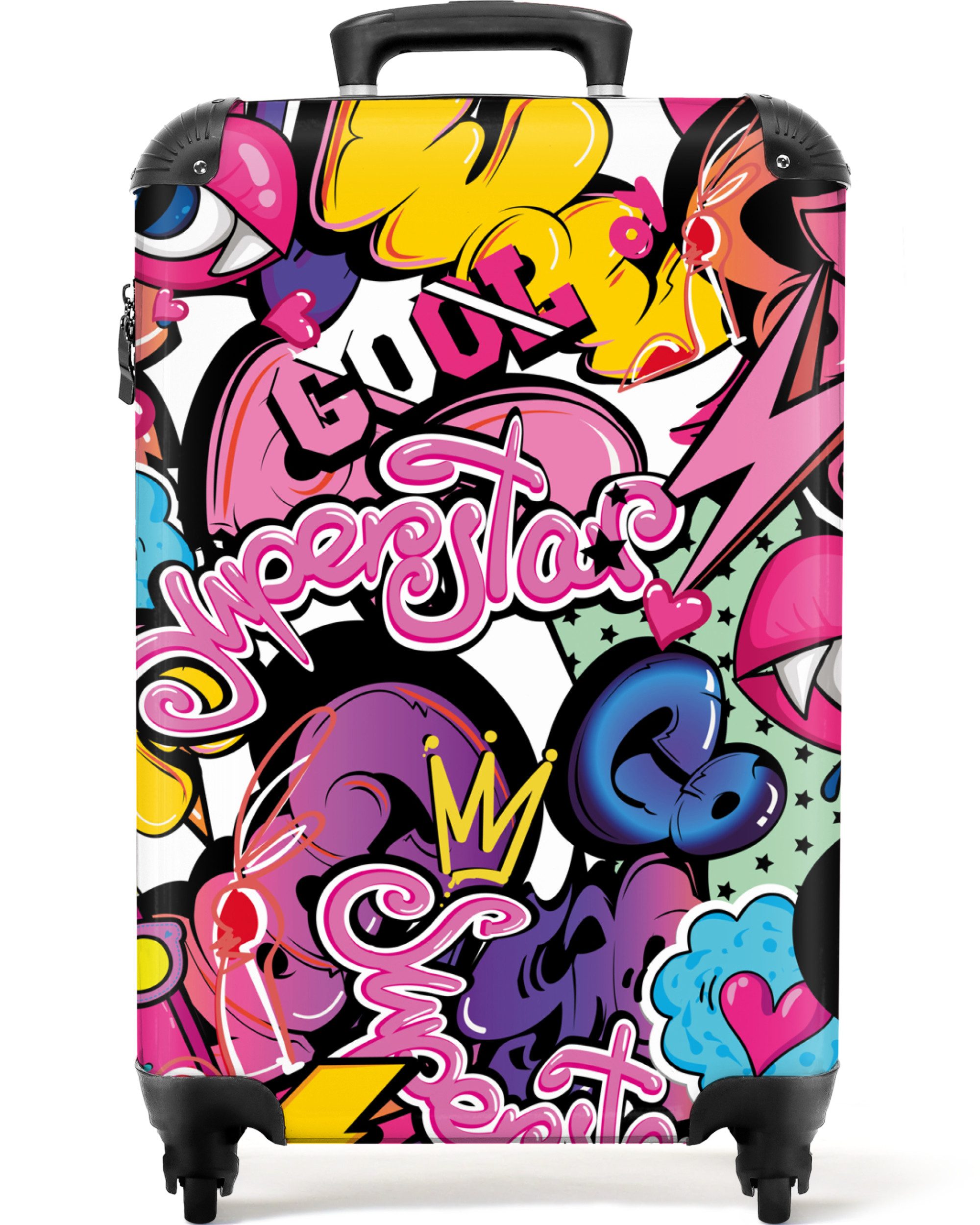 Das lustige Motiv dieses farbenfrohen Koffers wird in gestochen scharfer Premiumqualität gedruckt und stellt sicher, dass Du Deinen Koffer nie wieder an der Gepäckausgabe übersehen wirst. Zusätzlich bringt Dich das fröhlich bunte Design garantiert in Urlaubsstimmung! Deinen tristen Koffer kannst Du ab jetzt getrost zuhause lassen - dieser trendige Trolley ist das ultimative Gepäckstück und ein absoluter Hingucker für alle Reisen.