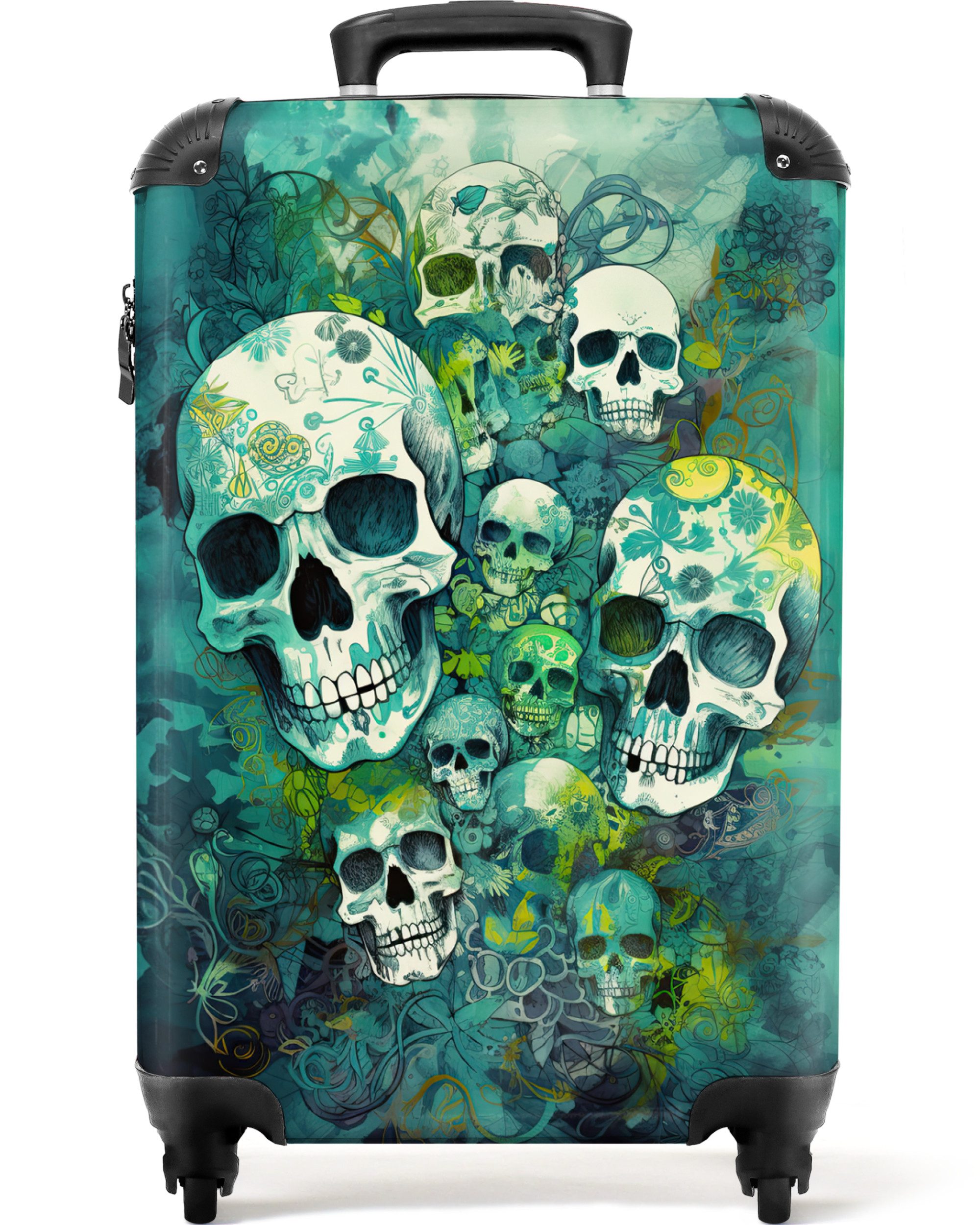 Druck von Totenköpfen mit Blumen und Farbflecken.Optik | bedruckt |
