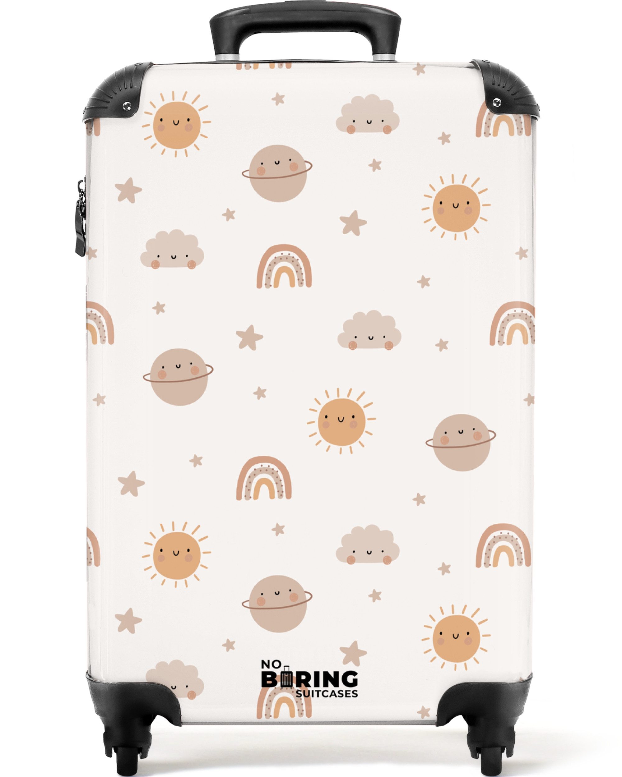 Das robuste Gehäuse des Hartschalenkoffers überzeugt durch einen UV-beständigen Druck in brillanter Farbqualität auf der Vorderseite. Die gerippte Struktur auf der Rückseite gibt dem Koffer mehr Stabilität und eine verbesserte Strapazierfähigkeit. Die moderne Hochglanzoberfläche besteht aus hochwertigem ABS-Material mit einer kratzfesten Beschichtung aus Polycarbonat und sorgt so dafür, dass Du noch viele Urlaubsziele mit Deinem neuen Lieblingskoffer bereisen kannst. Dank der vier wendigen Rollen und dem verstellbaren Teleskopgriff ist dieser Trolley ein solider und komfortabler Begleiter für jede Reisesituation. Das integrierte TSA-Zahlenschloss ist einfach zu bedienen und bietet dennoch zuverlässigen Schutz für Deine persönlichen Habseligkeiten.
